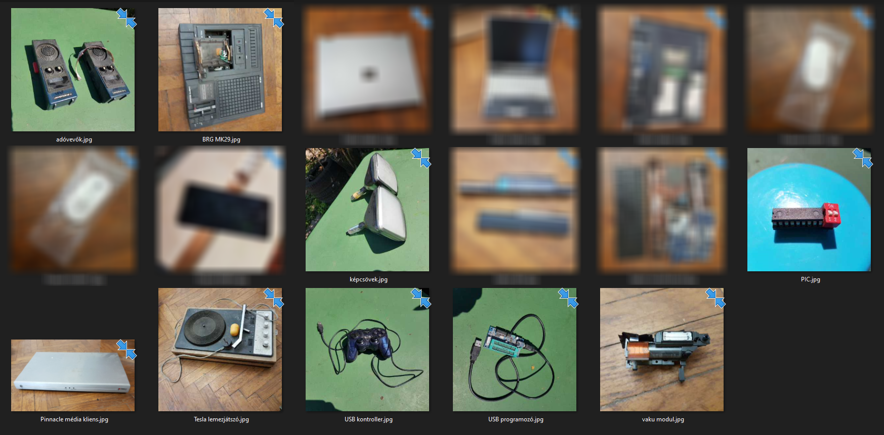 ▶ Pakk 1 ▷ TESLA lemezjátszó ‒ fellelt állapotban, bekapcsol, tányér pörög, erősítő működik, hangszedőfej tönkrement. ▷ BRG MK29 magnó ‒ kuplung gyenge, új szíj kell, kazetta ajtó javítandó, működik. ▷ 2 szürkeárnyalatos képcső ‒ tökéletes állapotúak, pótalkatrésznek, méretük 5". ▷ 2 "Universum HF11" adóvevő ‒ az egyik eredeti, a másikba bele lett piszkálva (adás gomb hiányzik). ▶ Pakk 3 ▷ PIC ‒ egyszer-kétszer volt próbából programozva, végül nem lett felhasználva. ▷ USB programozó ‒ a PIC is ezzel programozható. ▷ USB kontroller ‒ az egyik joystick rendetlenkedik. ▷ vaku modul ‒ fényképezőgépből bontva, állapota ismeretlen. ▷ Pinnacle Systems"média kliens" ‒ tévéhez, hálózati konfigurációt igényel, távirányító mellékelve. A cuccok helyileg Keszthelyen vannak, csak személyesen vihetőek, pakkonként. Jelentkezéseket itt várom, saját szállítóeszközt (pl. doboz, szatyor) hozni kell.