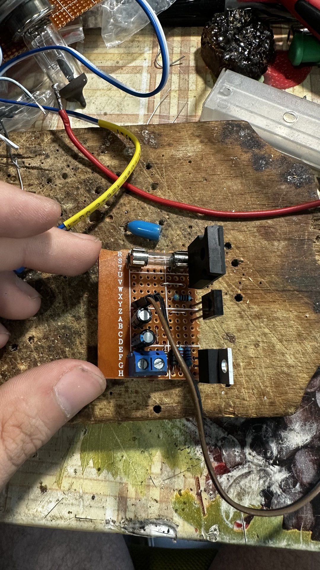 Sziasztok! Megepitettem ezt az egyszeru aramkort, tudom labortapegysegnek gyenge, de nekem most okes. Kovettem a kapcsolasi rajzot minden szempontbol. Van egy erdekes jelensegem. A potmeter letekert allapotban es van terheles a kimeneten, akkor 0.8A allando aramfelvetele van, amit persze elfut. Oke mas tranzisztorok, bd140 es tip3055. Szerintetek mi lehet az oka? A terheles egy h4 es izzo letezik, hogy az 1.25V ami a kimeneti minimum akkora aram folyna az izzo fele?