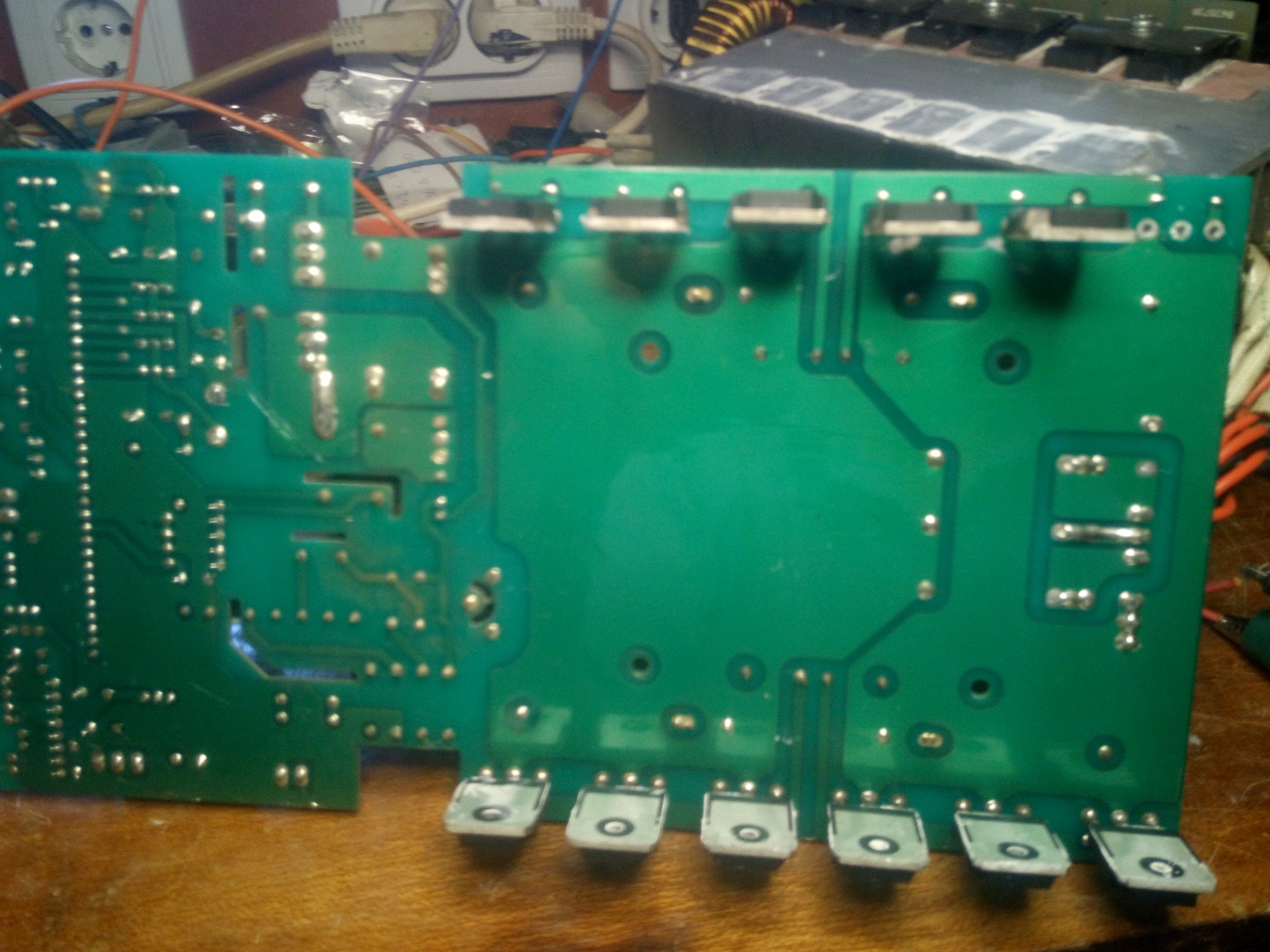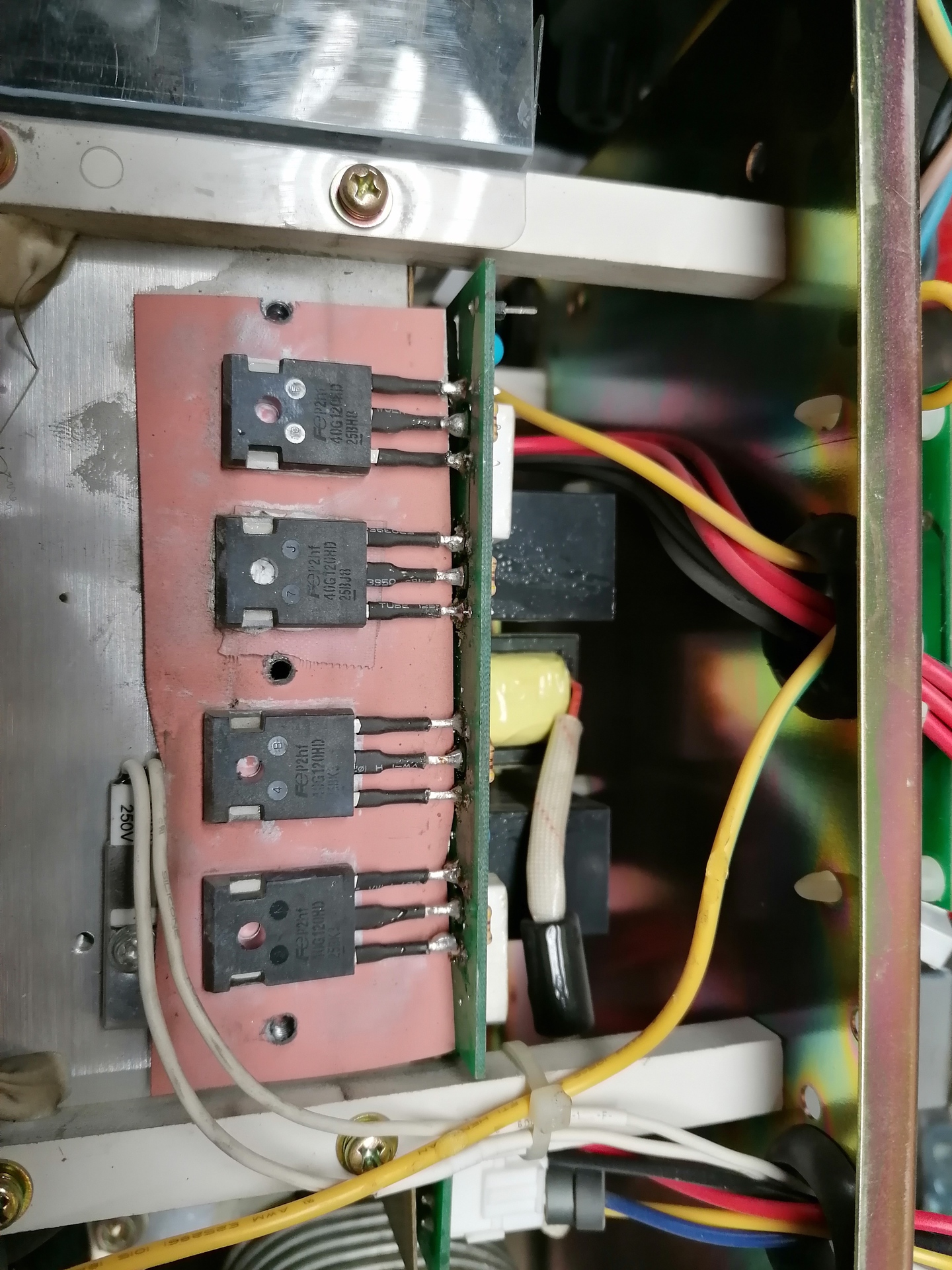 Ezen a hétvégén sikerült össze szerelni az inverteres hegesztőt. Mind a 8 darab igbt-t cseréltem IHW15N120R3 típusúra. Műterheléssel indítottam és nem volt probléma, utána élesben. Jól működik, kicsit hegesztettem is vele.
