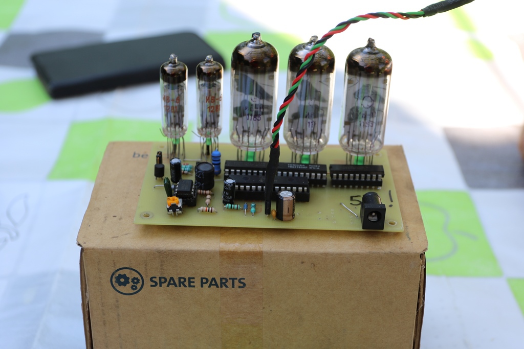 Beszélgetés közben melegedett a lábszár pörkölt, ami Kálmán és kedvese jóvoltából fenségesre sikeredet. A hús puha volt sűrű szaftja volt, íze csodálatos. Ez úton is köszönet érte. Kaja után István mosogatógépe lerendezte a tányérokat, bográcsot, így erre sem volt gondunk.Közben meg tekintetük az elektronikai kiállítást Madzagos által készített hőmérőt, amiben a nixie csöves alkatrészeket ötvözte az integráláramkörökkel.