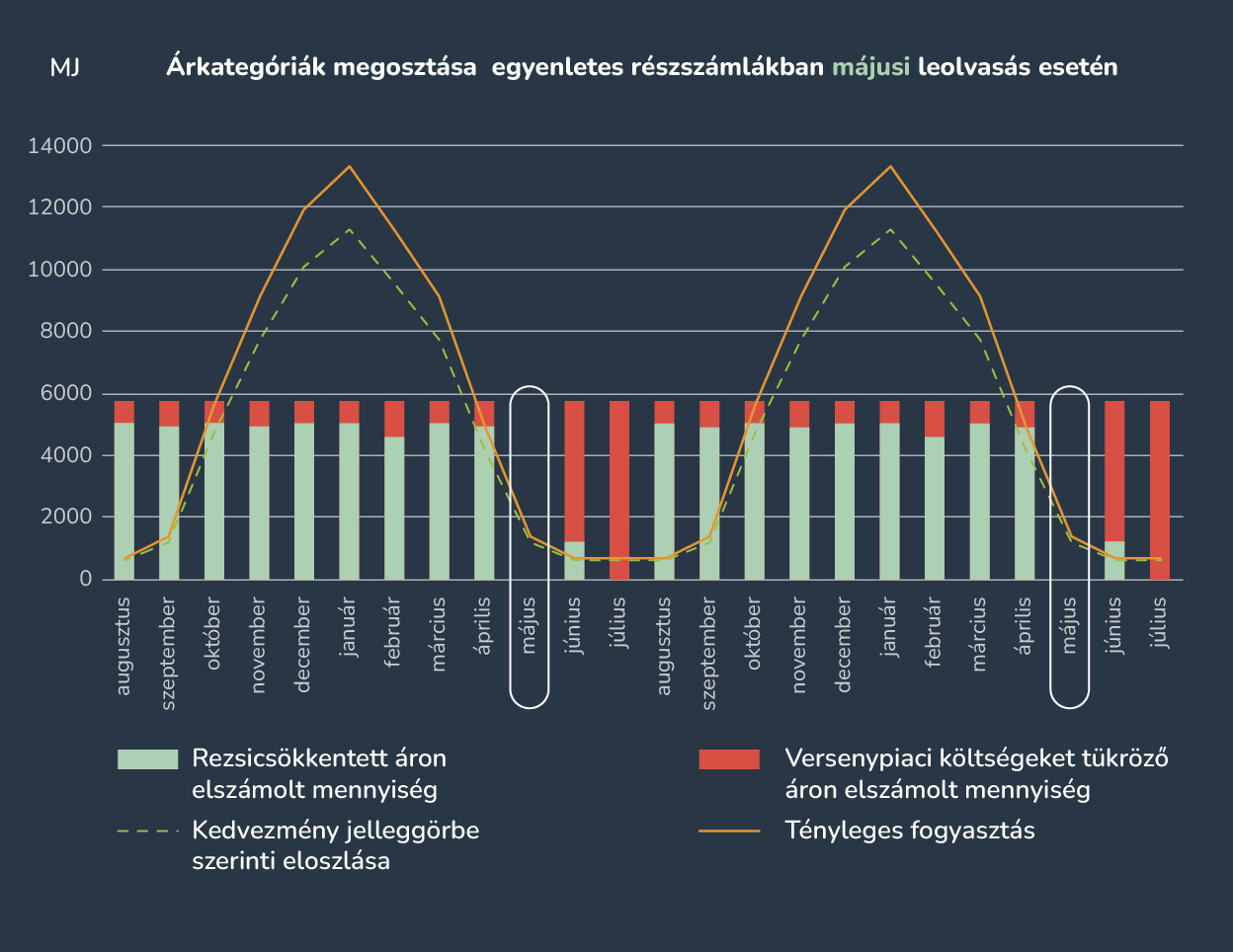 Valószínűleg két számlád lesz/volt nagy összegű, a többi nem (annyira). A piaci áras fogyasztást júniusban és júliusban számlázzák ki. A panaszod alapján neked az ábra szerint osztják el az összegeket.