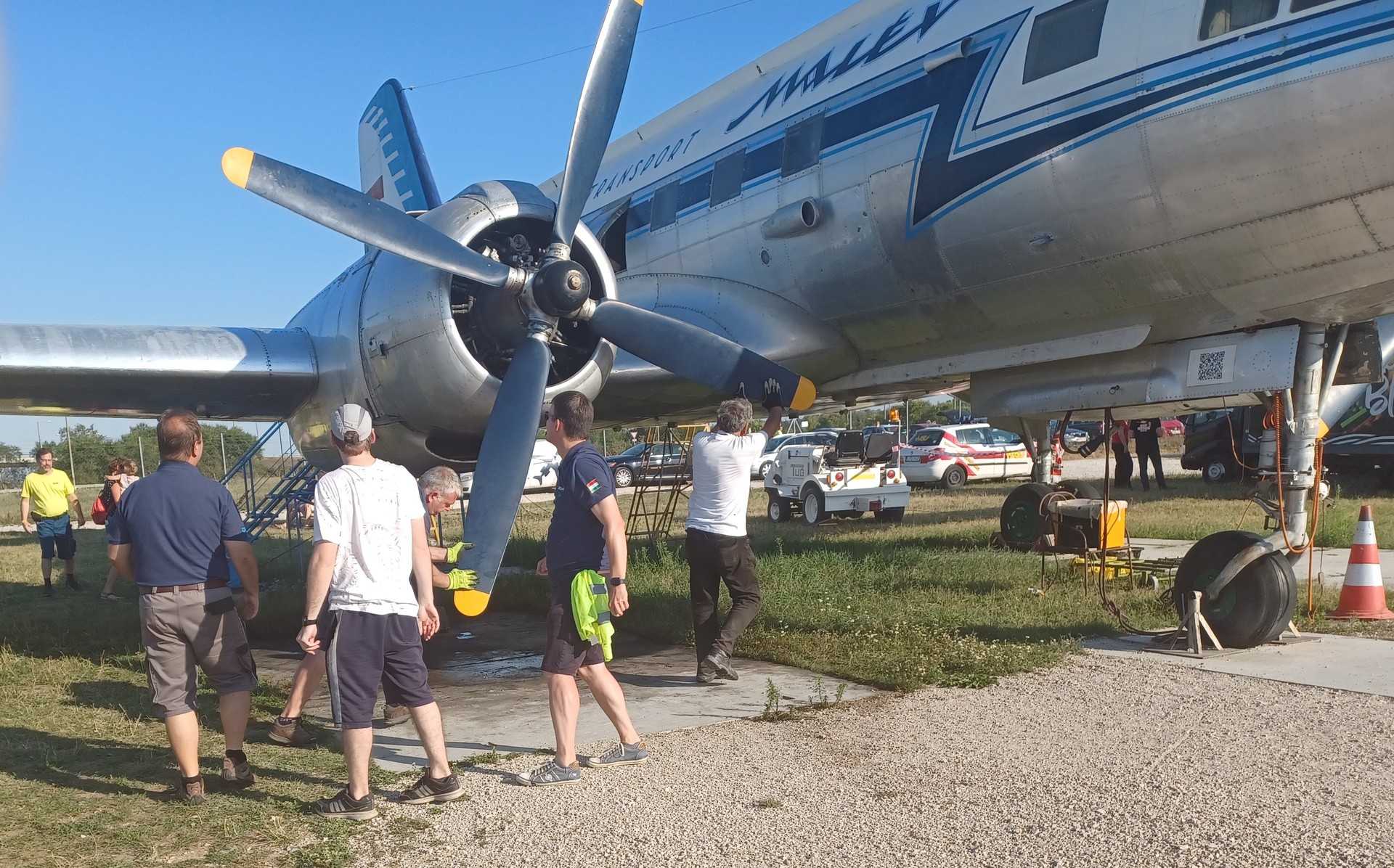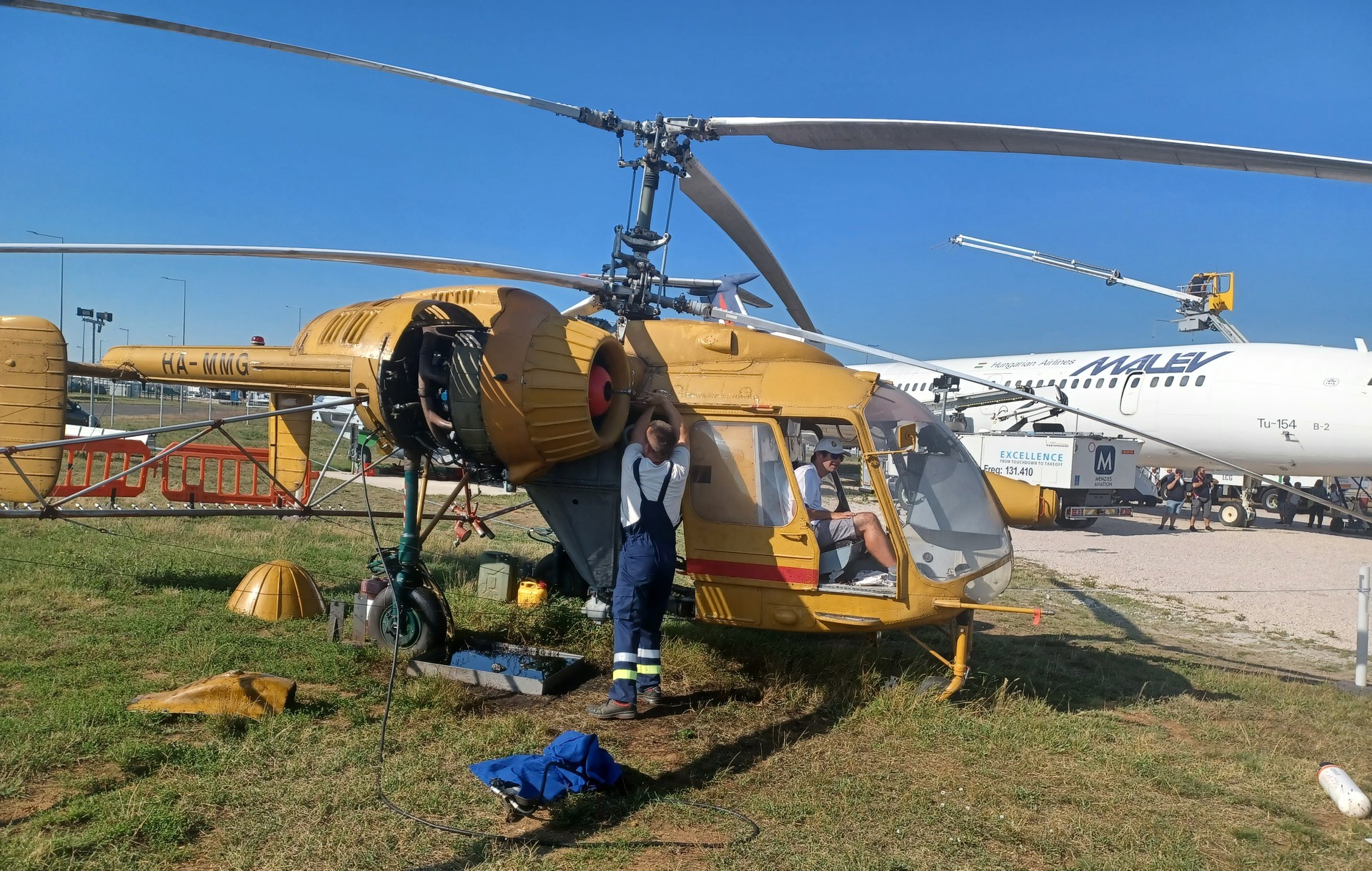 Idézet: „Amikor ejtőernyővel kiugranak, akkor azér' kalimpálnak a lábukkal, mert megpróbálják betolni a verdát? Hülye. Azt mondták, hogy a helikopter sűritett levegővel indul. Ha belefújok, elkezd berregni? 50 bar, odaadom a cső végét. Lehet próbálkozni. Tényleg kurbival kell tekerni indításhoz? Igen, mert feltartott kézzel nehéz körberohanni a helikoptert. Bezzeg ha leérne földig... Abban a nagy tepsiben mi van motor alatt? Kármentőnek hívjuk, olaj van benne. Akkor olajjal megy? Nem, benzinnel. Ez csak kicsepegő olajat fogja meg. Azok ott tényleg kézzel tekerik a propellert? Igen, a két darab 12 V/220 Ah akku nem sokáig bírja. Azzal a két hifitoronnyal mit lehet venni? Irányt. Az a sárga mellényes hapsi miért rohangál ott a kerítés mellett? Csak szól a oda parkolni próbáló (jeggyel nem rendelkezőknek), hogy álljanak pár méterrel arrébb, mert különben nagyon büdösen és olajosan fognak autóstul hazamenni. Apu, mi az az APU? Olyan mint egy hajszárító, csak hangosabb. Ezzel lehet zuhanyozni is? Télen repülőgépnek igen. Embernek úgy egyébként hetven fokos glikolban nem igazán bőrbarát.” Következő "röffentés" mezőkövesden lesz, szeptember másodikán. Bővebben: Link Pestről még van szabad hely az autóban.