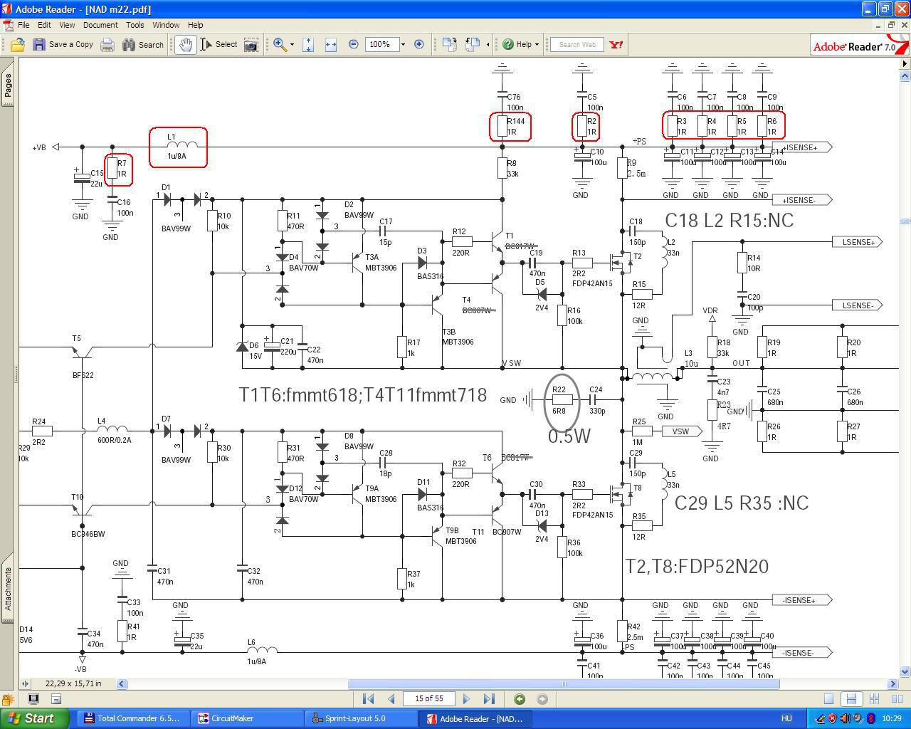 Ezek az 1 Ohmos ellenállások a "csillapítás NAD m22" képeden lévő pirossal bekeretezett ellenállások?