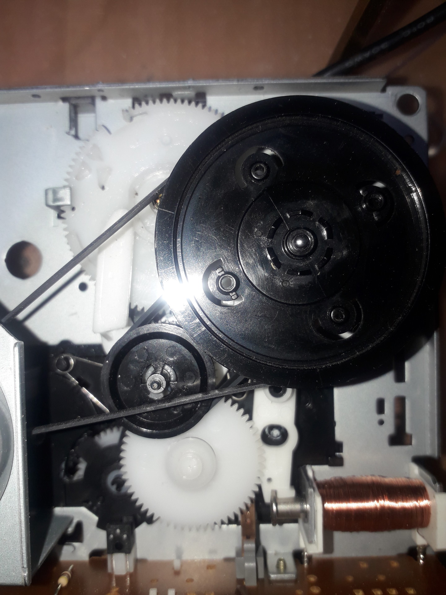 Igaz a topikban nem adtam még hírt a készülő magnóról, de a háttérben azért folyik a munka. A mechanika működésének megfejtése folyamatban van. Az automata mechanikán találtam egy számsort, gondolom a típusát jelöli. Azonban a számjegyek vége le van festve fekete filccel, és a számsor alá oda van írva a made in china. ![]() Szóval, amit eddig kiderítem: - A motor 6V DC-ről működik, és nem polaritás váltással teker. A "hagyományos" magnómotor elektronika van benne. Soros ellenállás, puffer kondi, IC, kicsi trimmer. Az elektrolit puffer kondi polarizált, így a magnómotor forgásiránya nem cserélhető fel. - A behúzó tekercs (szolenoid) 12 V -os, kb. 600 mA! szükséges a behúzásához. - A tekercset egy pillanatra, kb. 1 s időtartalmú rövid impulzus, áram alá helyezve behúzza a fejet tartó mechanikát, a görgőt leengedi. Addig ott tartja amíg egy második impulzust nem kap, ennek is kb. 1 s kell lennie. Ekkor a fej mechanikát felengedi. Bistabil jellegű. Azonban ez a mechanizmus , akkor működik csak, ha megy a motor. Ha motor leáll, akkor nem engedi le a fejet. Amit nem értek: A csévélést nem tudom, hogy történik, illetve nem értem. Feltételezem, hogy magának a tekerésnek a gyorsaságának megválasztása a motorral történik, annak a feszültségének megemelésével. De azt nem tudom, hogy hogyan kapcsol az egyes orsóforgató görgök között? Átkapcsolnom már sikerült az egyik forgó tengelyről a másikra. Szintén feltételezem, hogy 2 gyors rövid impulzus kell. De még pergésmentesen nem próbáltam. Itt is szintén mennie kell a motornak. De a viszonylag a sok próbával nem sikerült átkapcsolnom, így bizonytalan vagyok. De persze próbálkozok. ![]() A másik dolog. Tettem bele próba kazettát. Szépen viszi. Azonban, amikor a kazettát teljesen áthajtja, tehát amikor megáll a végén. Ilyenkor nem kapcsol ki a mechanika, nem engedi fel a fejet. Miért? Nem kellene automatikusan ilyenkor felemelnie a fejet tartó mechanikát a kazettáról? Ha adok impulzust a tekercsre, akkor sem. Vagy esetleg a szíj lehet, hogy már gyenge? A hozzászólás módosítva: Aug 15, 2023