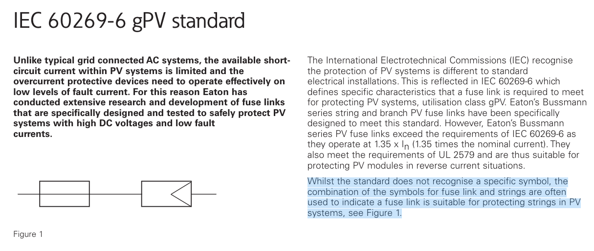 A jel a napelem jele kapcsolási rajzokon. A biztosítékon ezzel jelölik, hogy kimondottan a napelem oldalra (DC) gyártott termék (a szokásosnál sokkal nagyobb ívoltási képessége van).