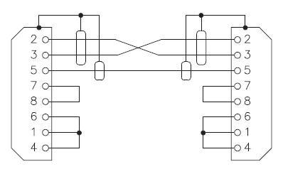 Elvileg nullmodem, tehát Rx Tx keresztbe van kötve.