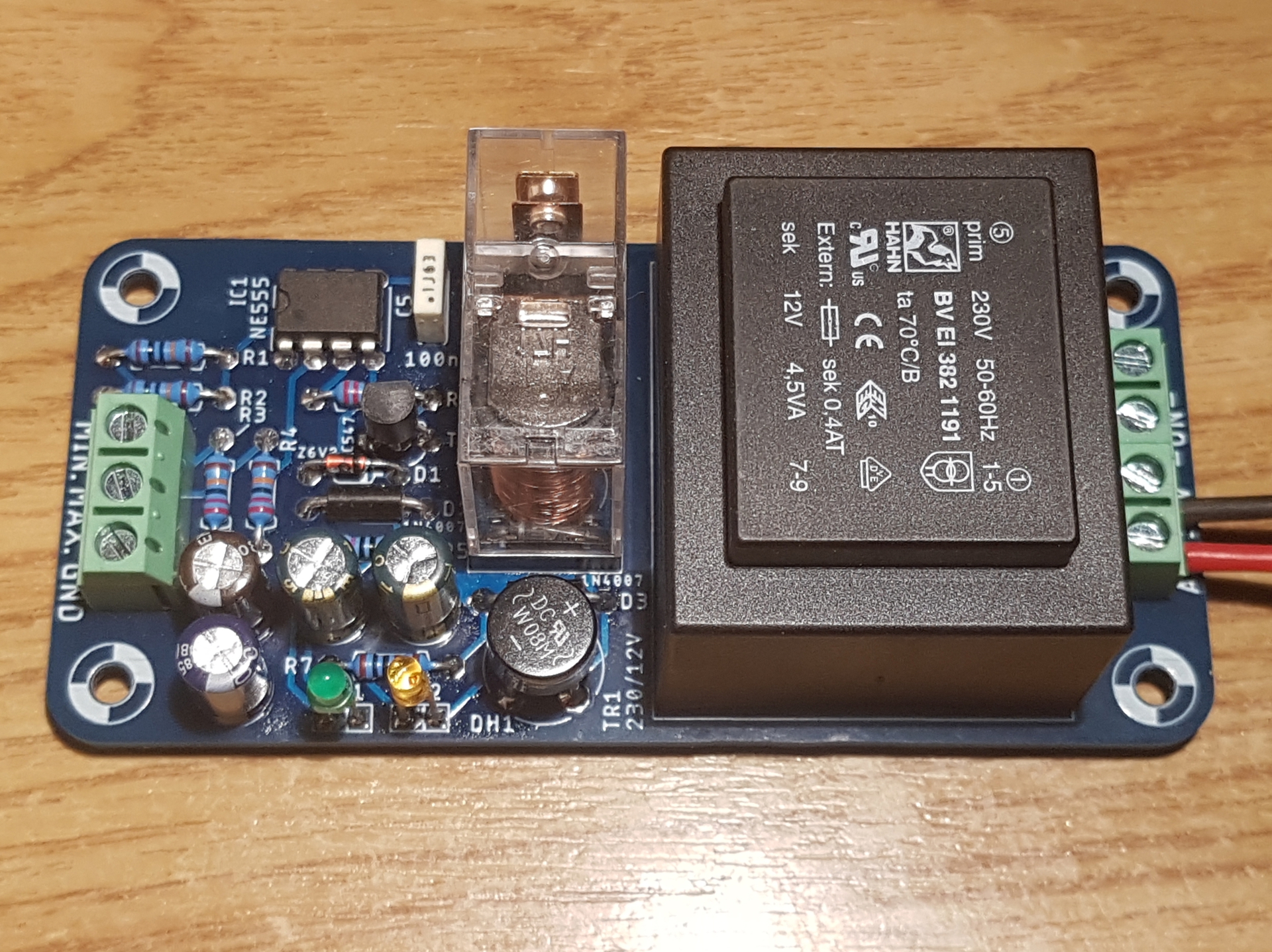 Az áramkör közel 10 éve hibátlanul működik. Itt van róla némi információ. Most csak a kézzel rajzolható panel helyett készítettem egy gyártható változatot. A szondáknak éppen az a lényege, hogy bármilyen közönséges fémtárgy alkalmas a feladatra. Ezek a szó szoros értelmében nem kapcsolnak, csak átbillentik az 555-öt. Amikor teszteltem, akkor kipróbáltam ioncserélt vízzel, csapvízzel, esővel, talajvízzel, és minden esetben teljesen stabil a be-ki kapcsolás. Mindkét szintérzékelés késleltetve van kb. 3 másodperccel, azaz egy kis hullámzás nem kapcsolja be, csak ha ennyi ideig vízet ér a felső szonda, és miután a szint az alsó szonda alá csökken, akkor is csak ennyi idő múlva áll le a szivattyú. Direkt a kedvedért most lementem és lefotóztam a nálam lévő "szondákat". Jól látszik, közönséges rozsdamentes lemezből vágtam csíkokat, amiket egy szigetelő tömbhöz csavaroztam. A felső szintet még egy kis rátekeréssel hangoltam is, hogy hamarabb kapcsoljon be. Mellékeltem a kezdeti "teszt-berendezést" is ahol a falapot emeltem ki az üvegből, és így szimuláltam a folyadékszint csökkenést. A hozzászólás módosítva: Jan 1, 2024