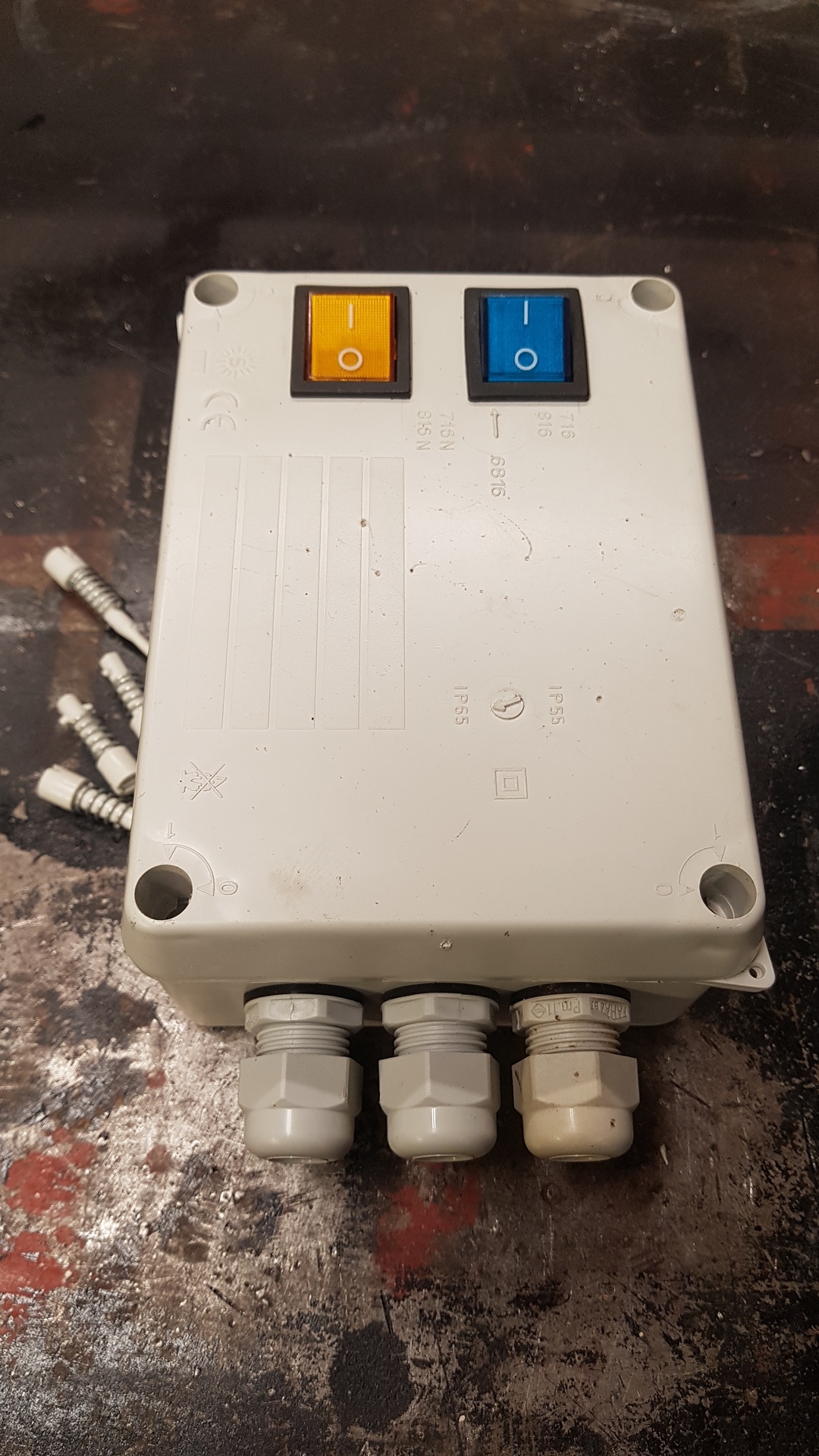 Azért van két kapcsoló rajta, mert egyik a szokásos "ki-be" kapcsoló, a másik pedig egy "direkt" lehetőség. Csak érdekesség, hogy a direkt kapcsolóban lévő glim-lámpa nem csak akkor világít ha direktbe van kapcsolva, hanem akkor is ha az érzékelők indítják be a szivattyút. Ennek peresze nem sok jelentősége van, hiszen a ha megy a szivattyú azt jól lehet hallani, de nekem tetszik ez a jelzés. Mindent kipróbáltam, jól működik. Már csak falra kell szerelni és bekötni.