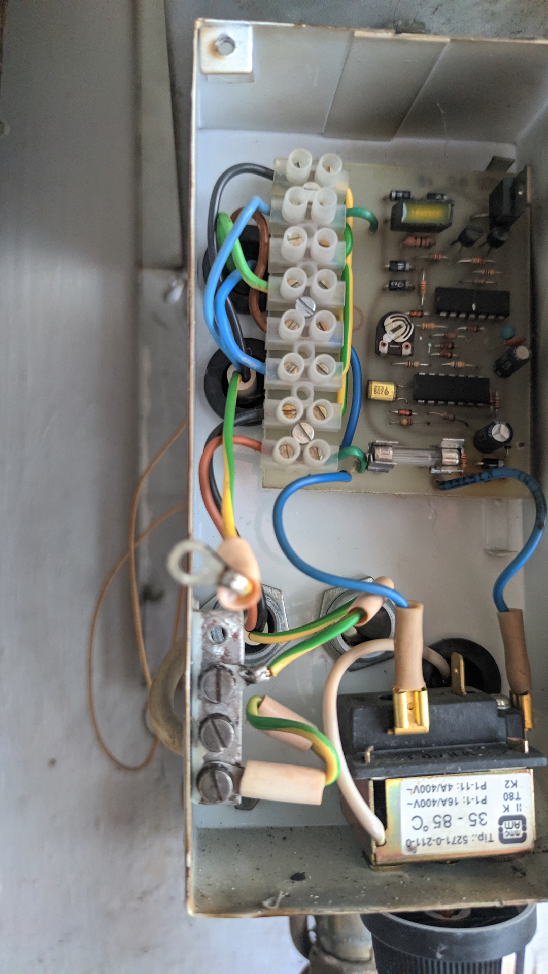 Még mindig az a kérdés, hogy mi van a dobozban? Ezt kellene kideríteni, mert az utókeringési feszültség soknak tűnik a szivattyú számára ami ezért nyitvatartja a vízáramlás-biztosítón keresztül a gázszelepet. Szerintem valamelyik tirisztoros elektronika van benne (KEB-160, vagy UK-1). Az MV, kondenzátoros megoldás az inkább úgy megy tönkre, hogy nincs elég utókeringési feszültség a kapacitásvesztés miatt. Szerintem majd be kell ruházni egy ilyen vezérlőre és jó lesz a készülék.