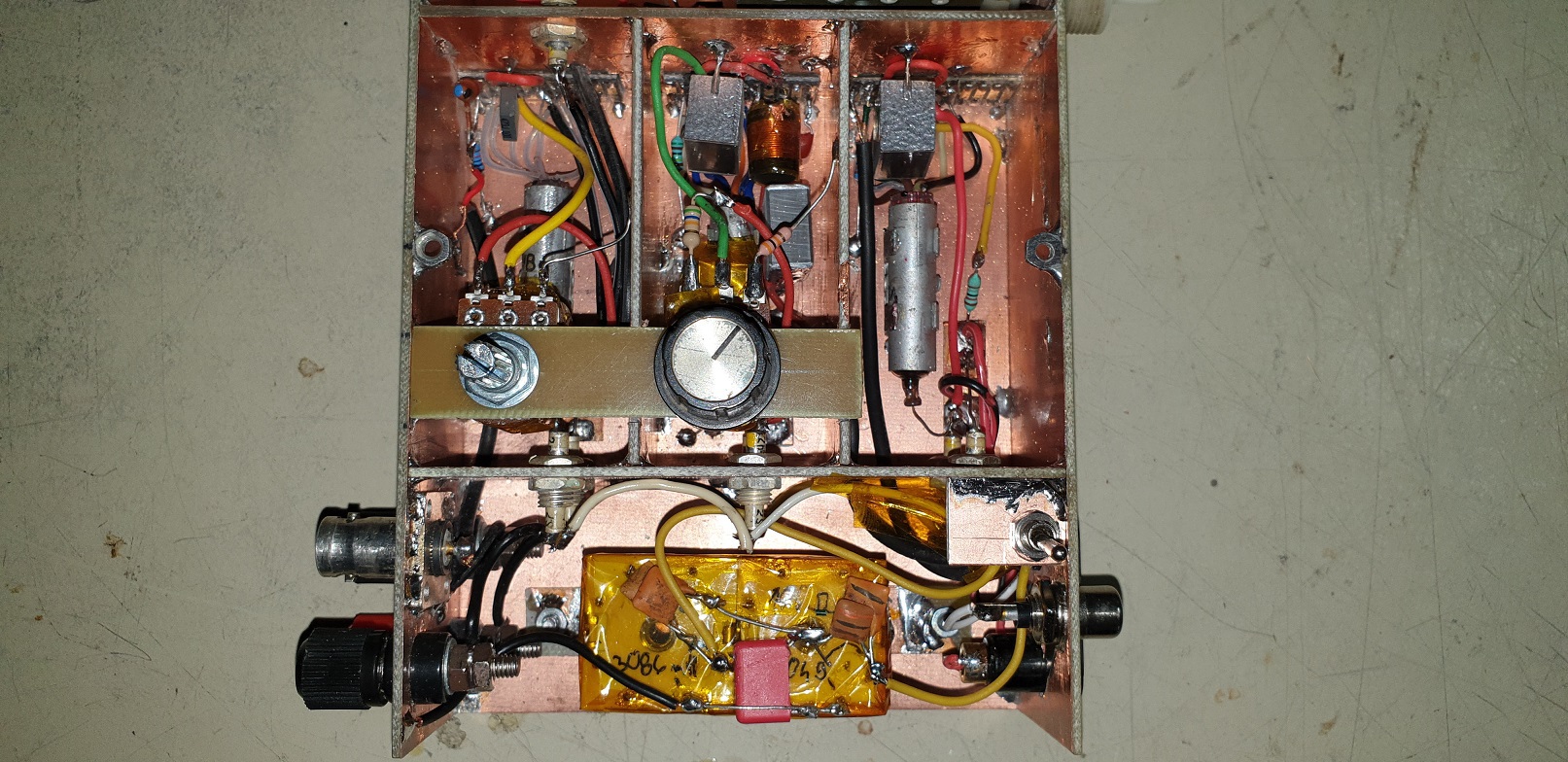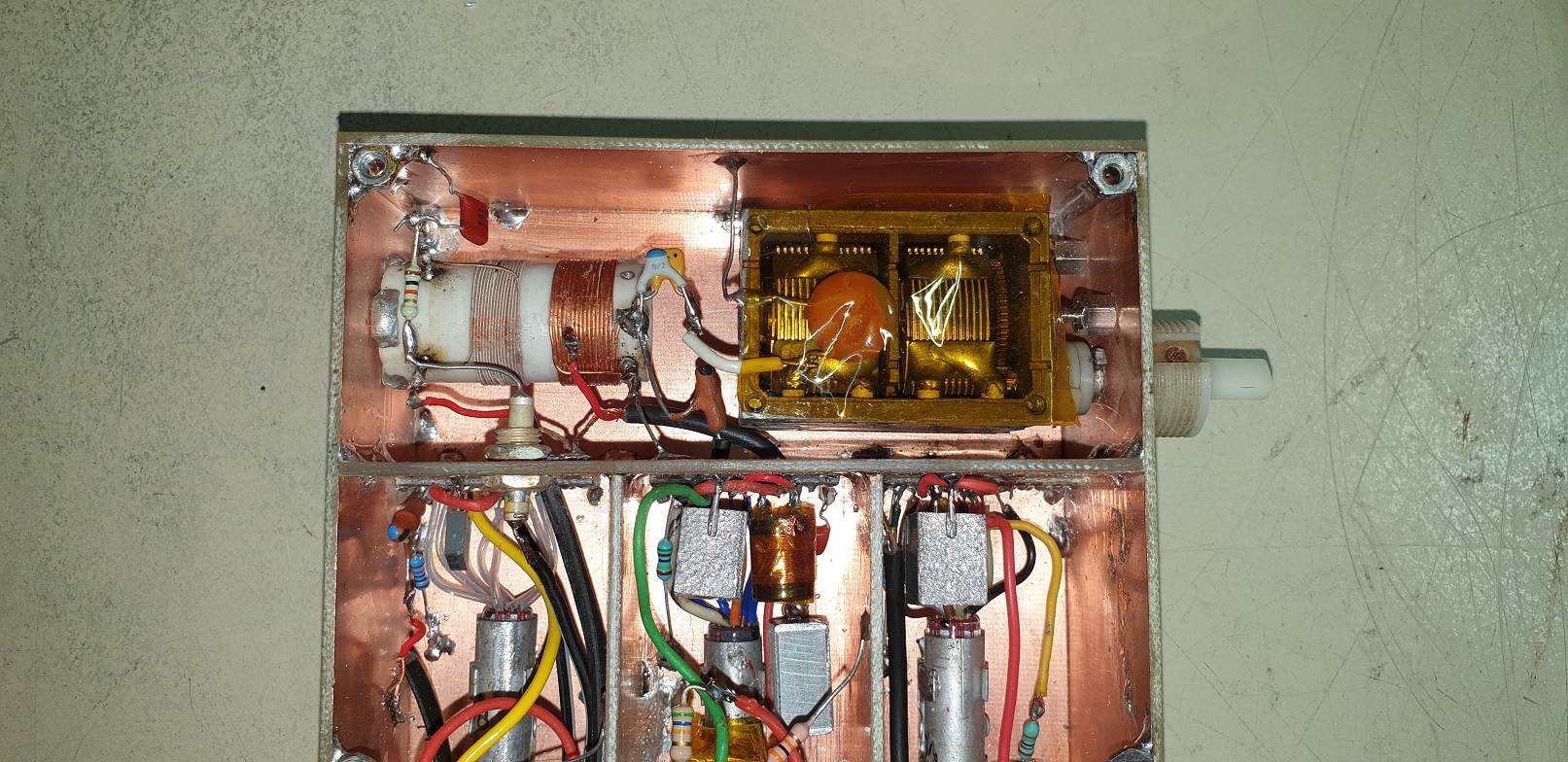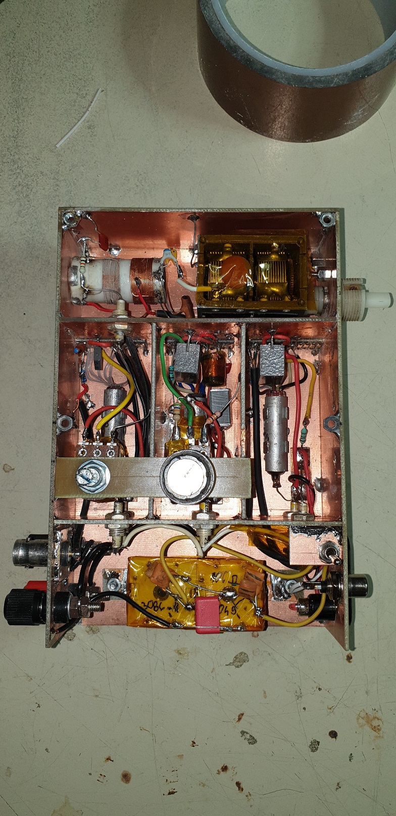 Az elmúlt hetek építgetése ez a regeneratív (1v1) vevő, három darab orosz ceruza csővel működik, 1db 1zs24b és két darab 1zs29b, az első fokozat egy 1zs29b ami egy 50 pf-os kondenzátoron keresztül kapja az antennáról a jelet és erősíti (ez szabályozható), majd a csatoló tekercsre továbbítja, ennek egyik nagy előnye hogy az antenna nincs hatással az oszcillátorra, csatoló tekercs másik felén ott az oszcillátor tekercse, amit az 1zs24b hajt meg, ez egy eléggé gyengécske cső viszont ebbe a fokozatba tökéletes, nem gerjed, nagyon finoman lehet szabályozni. Innen a hangfrekvenciás jelet egy újabb 1zs29b kapja meg és erősíti, a kimenet egy sima régi villásdugó aljzat, 4000 ohm-os fejhallgatóhoz, illetve kivezettem egy rca aljzatra is jelet ha az ember erősítőre kötné. Lakik benne még egy passzív távíró szűrő is, 700 Hz-re beállítva ami kapcsolható, körülbelül 100 Hz sávszélességgel. Az egész 50 voltos anódfeszültségről, és 1,2 voltos fűtőfeszültségről üzemel. Nem lett a szépség királya, de majd tervezek neki idővel egy fa dobozt. Ami majdnem lemaradt, 6900 – 7400 kHz közötti frekvencián üzemel, a videó kicsit káosz, a távíró szűrő nagyon keskeny nem könnyű kezelni videó alatt, a terjedés meg olyan amilyen , ha nem videózom biztosan minden jól jön ![]() Videó