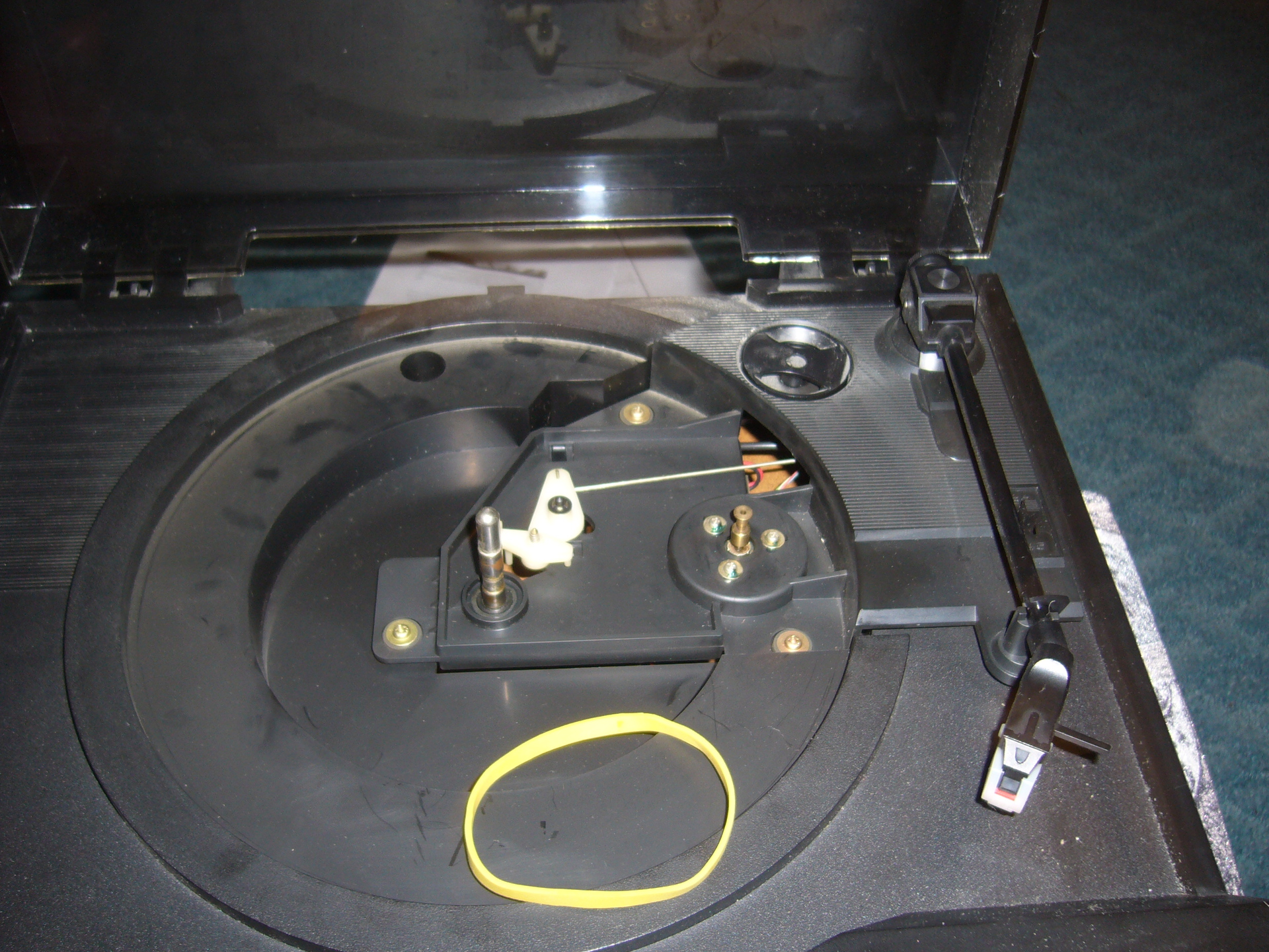 Sziasztok! Került hozzám egy ilyen szerkezet, a pecsét alapján 1986 márciusi. Annyit mondtak róla hogy minden működik, kivéve a lemezjátszót, "csak egy tejgumi" kell hozzá ráteszem és annyi. Nos. Belelestem, a biztosító zégergyűrű levétele után leemeltem a tálcát. Hááát.. khm.. hogy is van ez? Csak nekem tűnik elsőre hiányosnak?