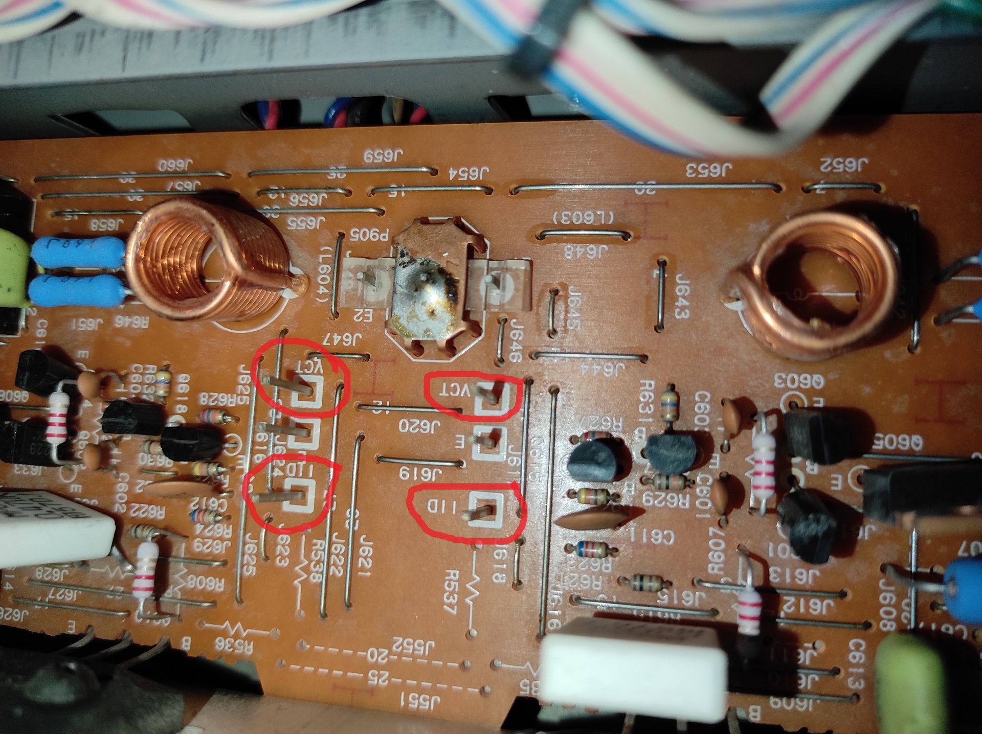 Szia! A mérés előtt szemrevételezzük a végtranzisztor emitter-ellenállásokat, ha égés nyomát látjuk rámérünk 20 %-on belül van-e a tényleges értéke. Az ellenálláslábak beforrasztását átfuttatjuk, ha ki lennének mattulva a melegtől.
