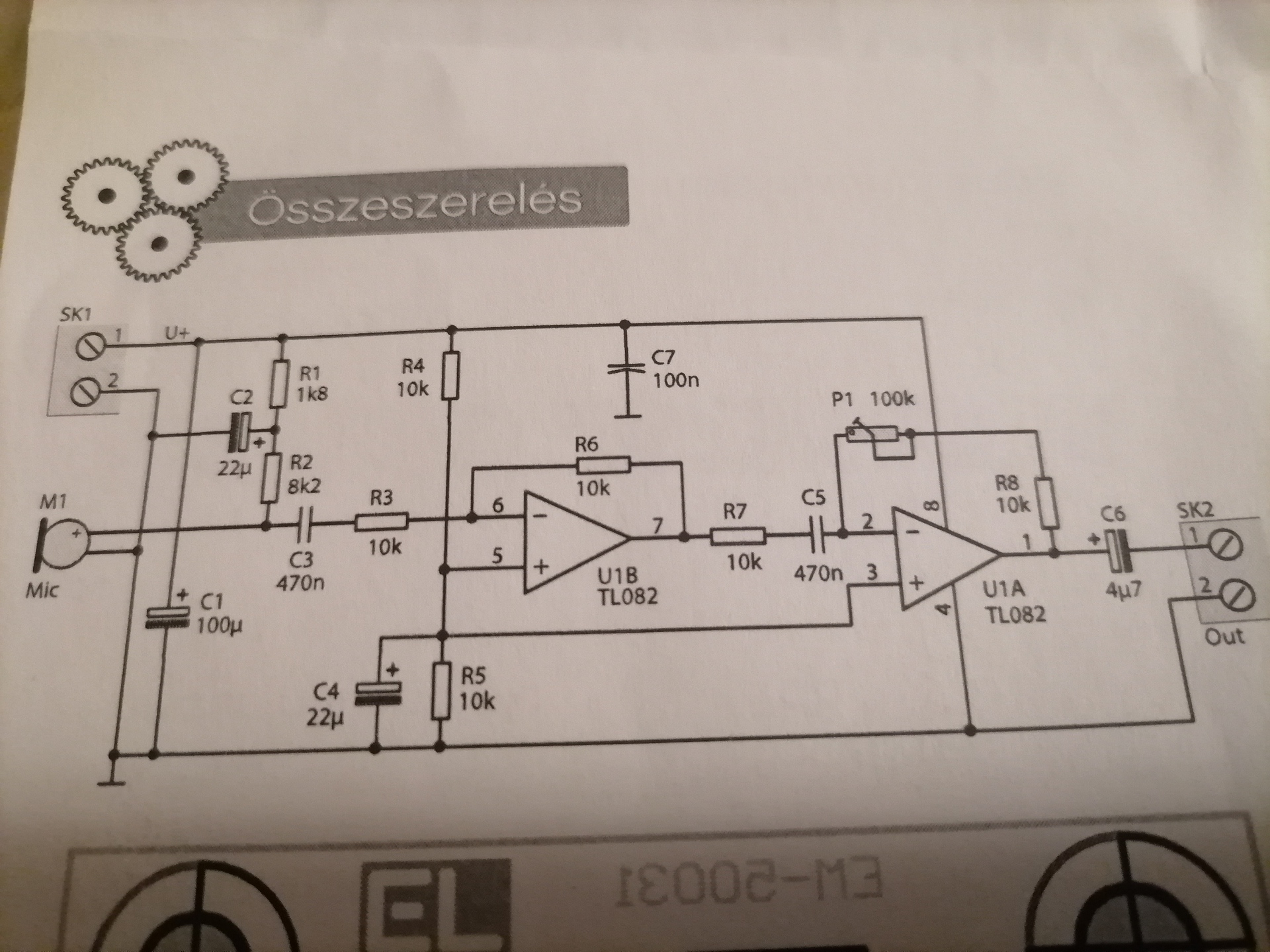 Mikrofon modul Nekem 60032-s a modulom van, de nagy vonalakban ilyen szolgáltatja a jelet. Marad a műveleti erősítő?