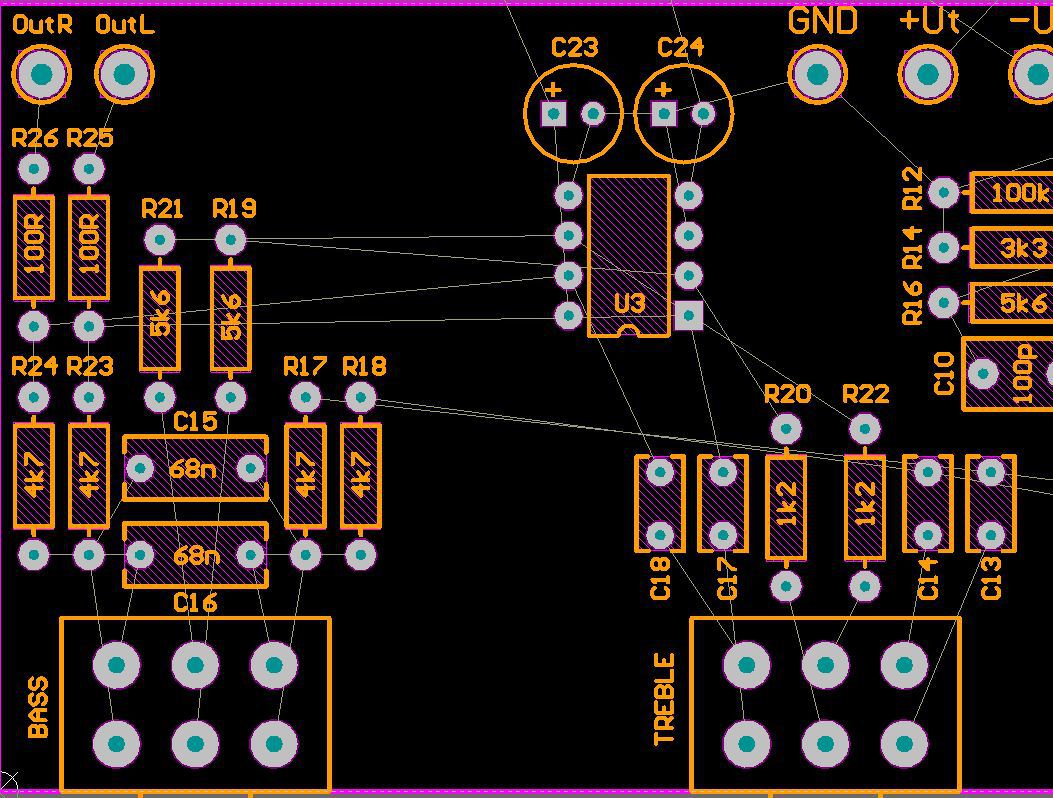 Lenne még kérdés. A bemeneti panelt rajzolgatom és az lenne a kérdés, hogy az ellenállásértékek jók-e? A földrehúzó 100R az elvileg jó, de ami kimegy az eszközökhöz, line out-ok ellenállásai megfelelőek-e? A Videotonnál 330k és 4k7 van, az Orionnál 2k2-t láttam a kimenet felé. A hangszínszabályzódhoz illeszteném.
