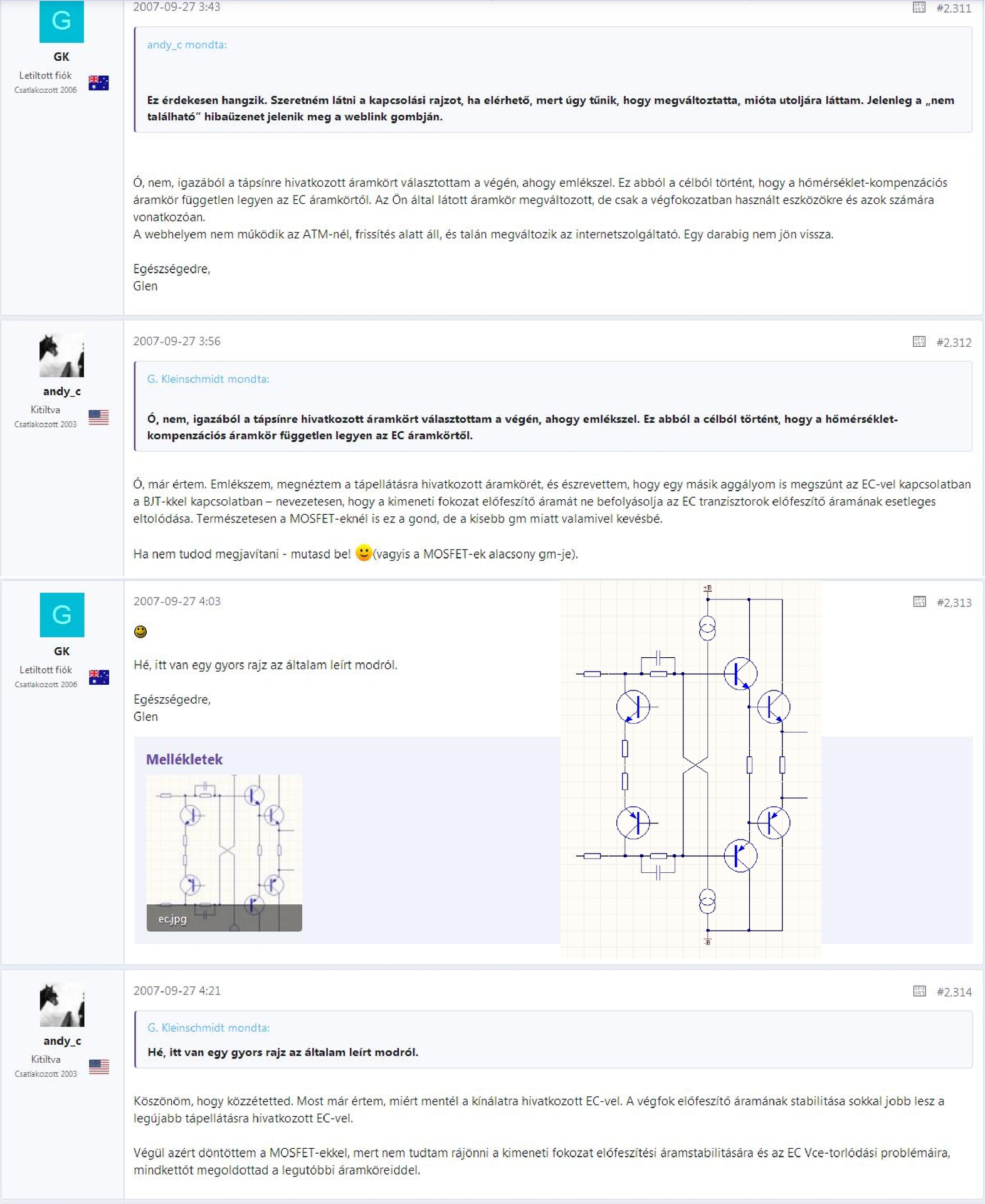 Szeretnék néhány idézetet kiemelni a "nagyoktól". Ott is vannak viták, valamint párhuzamos beszélgetések - értem ez utóbbi alatt, hogy ketten-hárman vitatkoznak az egyik problémáról, miközben mások másról - és folyamatában összeolvasva nehezen értelmezhető a két külön téma. Ezek az idézetek arra lennének jók, hogy ne csak én tudálékoskodjak itt, hanem mások is : ) Ez persze poén akart lenni. Másrészt amíg ezt "szerkesztem", akaratlanul is jól át kell rágnom magam a témán. Megkísérlem összelopkodni azokat az ötleteket amelyek miértjét és működését megértem és talán fel is tudom használni. És, hogy most miért ez a HEC mániám? Azért mert az egyetlen Cordell HEC amit építettem itt szól a szobámban, tetszik, beleszerettem... de tudom róla, hogy ahogy ez meg lett építve - közel nulla hozzáértés mellett - az egész biztosan messze van attól amire ez a kapcsolás képes lehet(ne). Tehát próbálkozom, oszt ha nem sikerül akkor végső esetben marad ez így, ahogy most van. Tanulni jó játék, a többi mellékes. A kékkel bekeretezett részt még most sem értem. Milyen jFET-nek melyik ellenállása van leosztva, de újra elindultam a kályhától... ha jutok valamire megmutatom. Jó lenne ha kicsit jobban értenék a számítógéphez, most CorelDraw-val illesztgetem össze a részleteket. Biztosan van ennél egyszerűbb, jobb, gyorsabb valami is... de úgy kell nekem. Ui: most, hogy látom mit követtem el... szerintem ez elég jól olvasható, még az '1.jpg' is. A hozzászólás módosítva: Okt 3, 2023