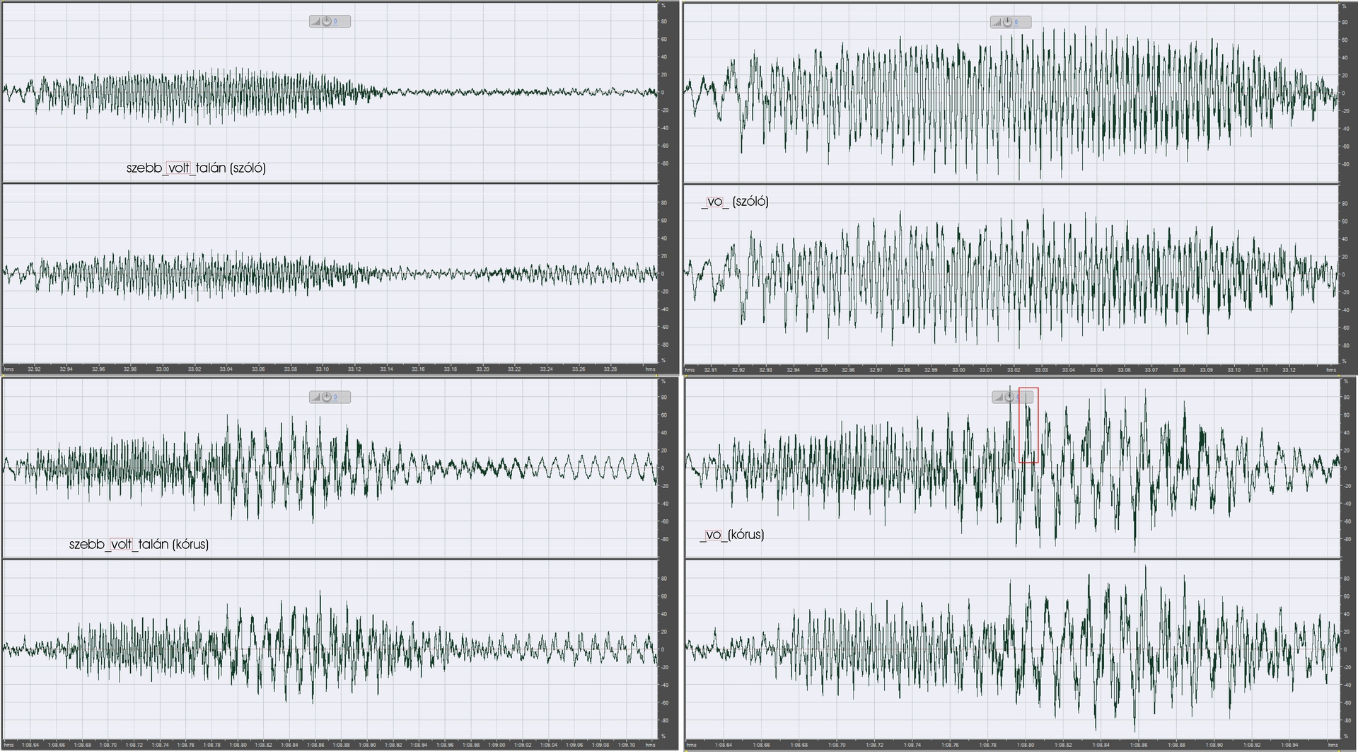 A szóló ének tele van null-átmenetekkel, a kórus félhullámonkénti áramirány váltásokkal.