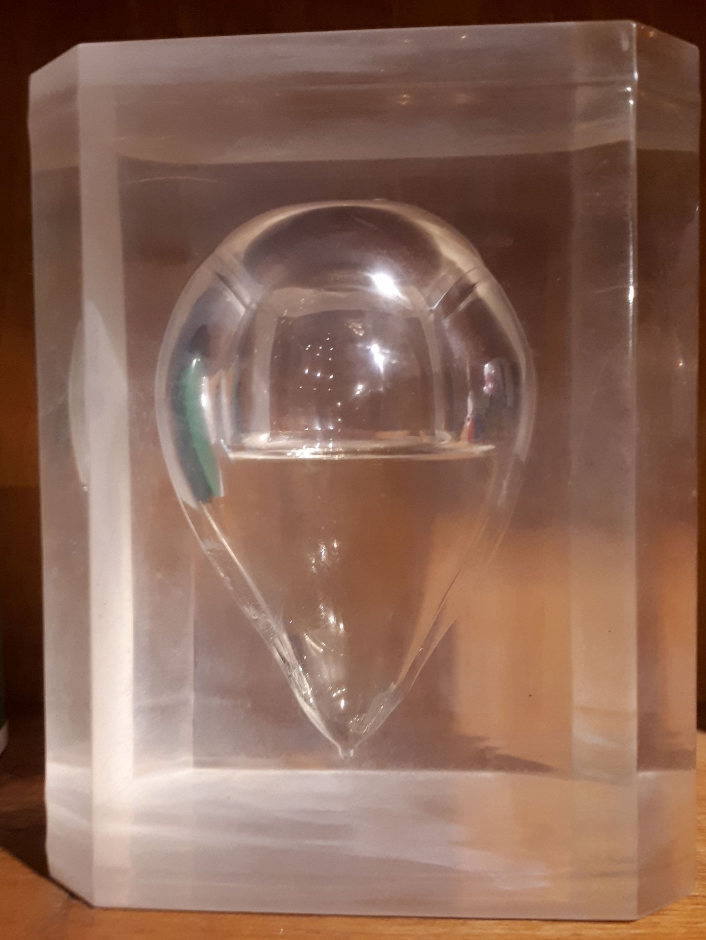A próba megejtve...az olvadt viasz lötyög benne. Most fejre állítva hagyom megdermedni...