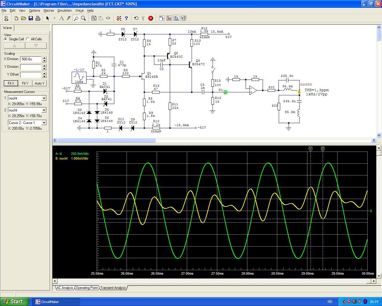 Nincs négyszögjel a zenében? Tényleg nincs. De akkor miért szoktad te is feltenni a négyszögjeles szimulációkat? Ha nincs négyszögjel, akkor hagyd ki a C5-öt. ( Az R11-en állandóan folyik áram, a nyugalmi áram miatt, de visszafelé nem tud folyni a dióda miatt. De ez négyszögjelnél lassú. )