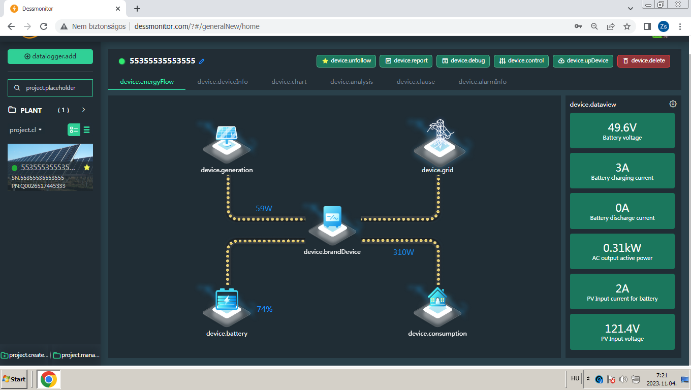 Talán megvan mi okozza a "hibát" Meg kell adni hogy mikor térhet vissza lemerült állapotból aksis üzemmódra. Az 51v feszültségre volt kapcsolva de ahogy felraktam 57volt és hogy tölthet hálózatból máris 53.8 voltig felment. Ma már alvóba rakom magam mert fáradt vagyok és kezd a fejem nehéz lenni. Holnap ha jó idő lesz a nap ellem mellett még megtámogatom hálózattal is hagy tudjon tölteni fel teljesen hogy jól e gondolom.