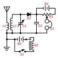 vétel állásban sima detektoros. Adás esetén , A földtelep energiája Az alagutdiódával oszcillál--s igy lehet adni is.A szénmikrofonnal AM ,de ha billentyűt kötsz a helyére akkor CW ben. Valóban kiváncsi lennék ,a hatótávra.