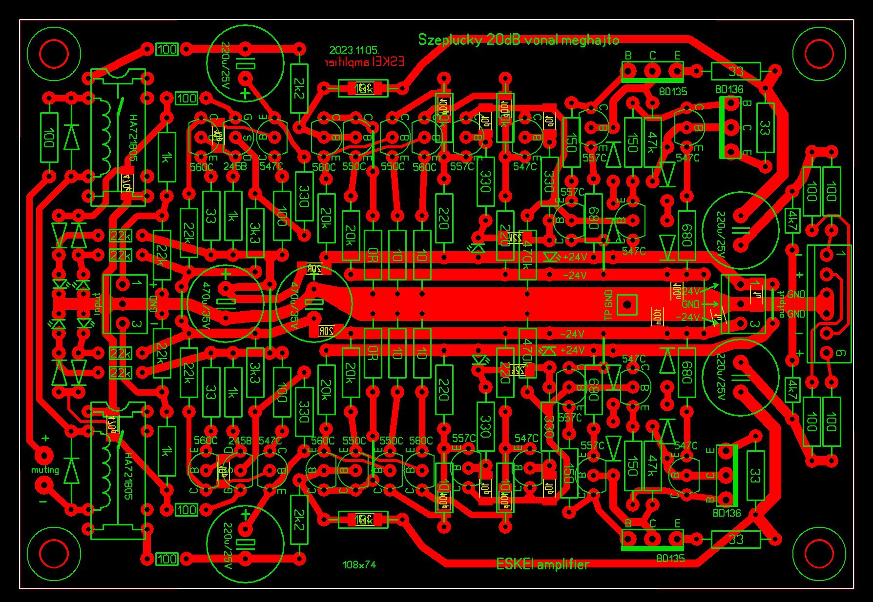 Nem nagyon szeretnék ezekkel a PA technikákkal foglalkozni, csak ezt most bevállaltam mert érdekesnek találtam. Ezek csak 500 W-os végfokok, a 60uV-os kimeneti zajt kb. 10-20-szorosan erősítik. 50nF kapacitív terhelésre zsebre dugott kézzel rá tud dolgozni. Némító van a bemeneten, elvileg nem fog koppanni ki-bekapcsoláskor... majd letesztelem.