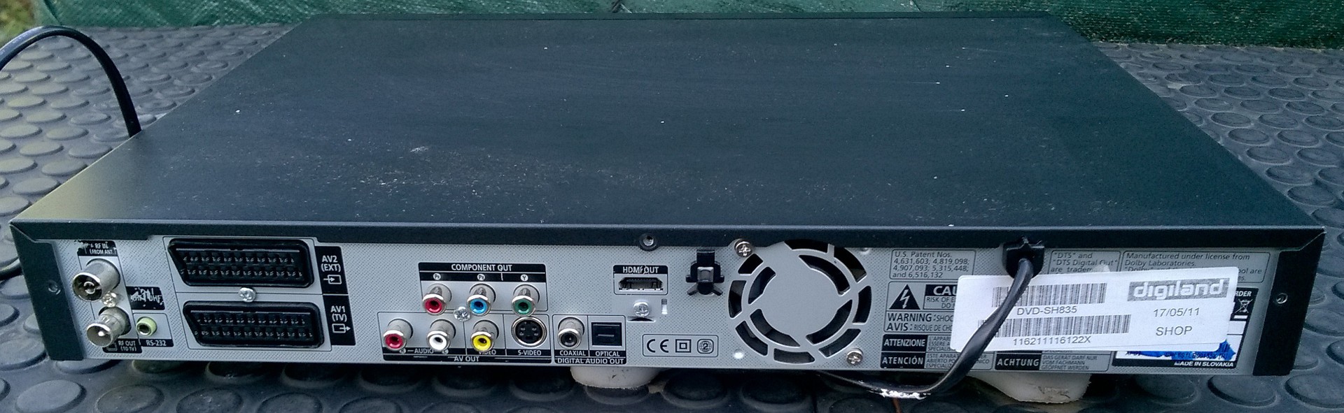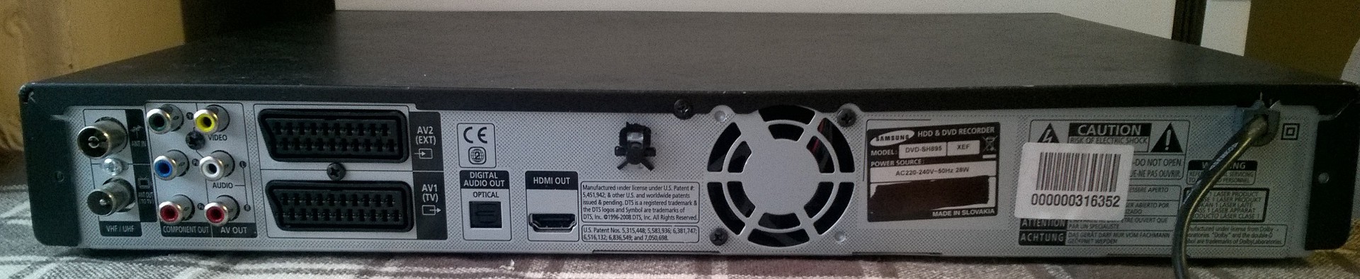 - Samsung DVD-SH835 DVD-felvevő: RS-232, antenna be- és kimenet, SCART TV, SCART VCR, AV, komponens, S-Video, koax, digitális hang, HDMI kimenetek, teszteletlen;