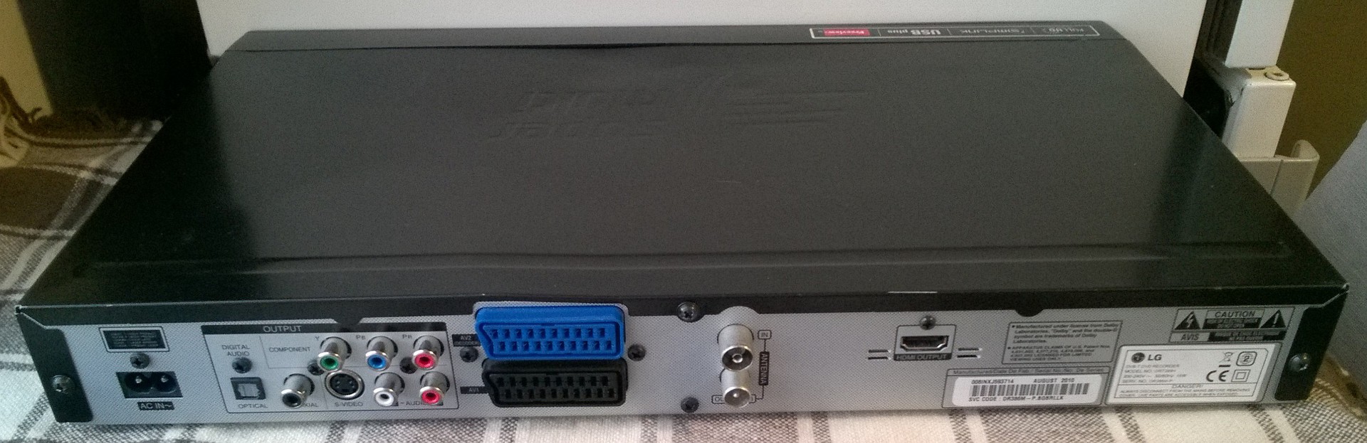 - LG DVB-T DVD Recorder DVD-felvevő: SCART TV, SCART VCR, komponens, koax, S-Video, AV, digitális hang, HDMI, antenna kimenetek, antenna bemenet, bekapcsol, lemezt kiadja, tovább nem teszteltem;