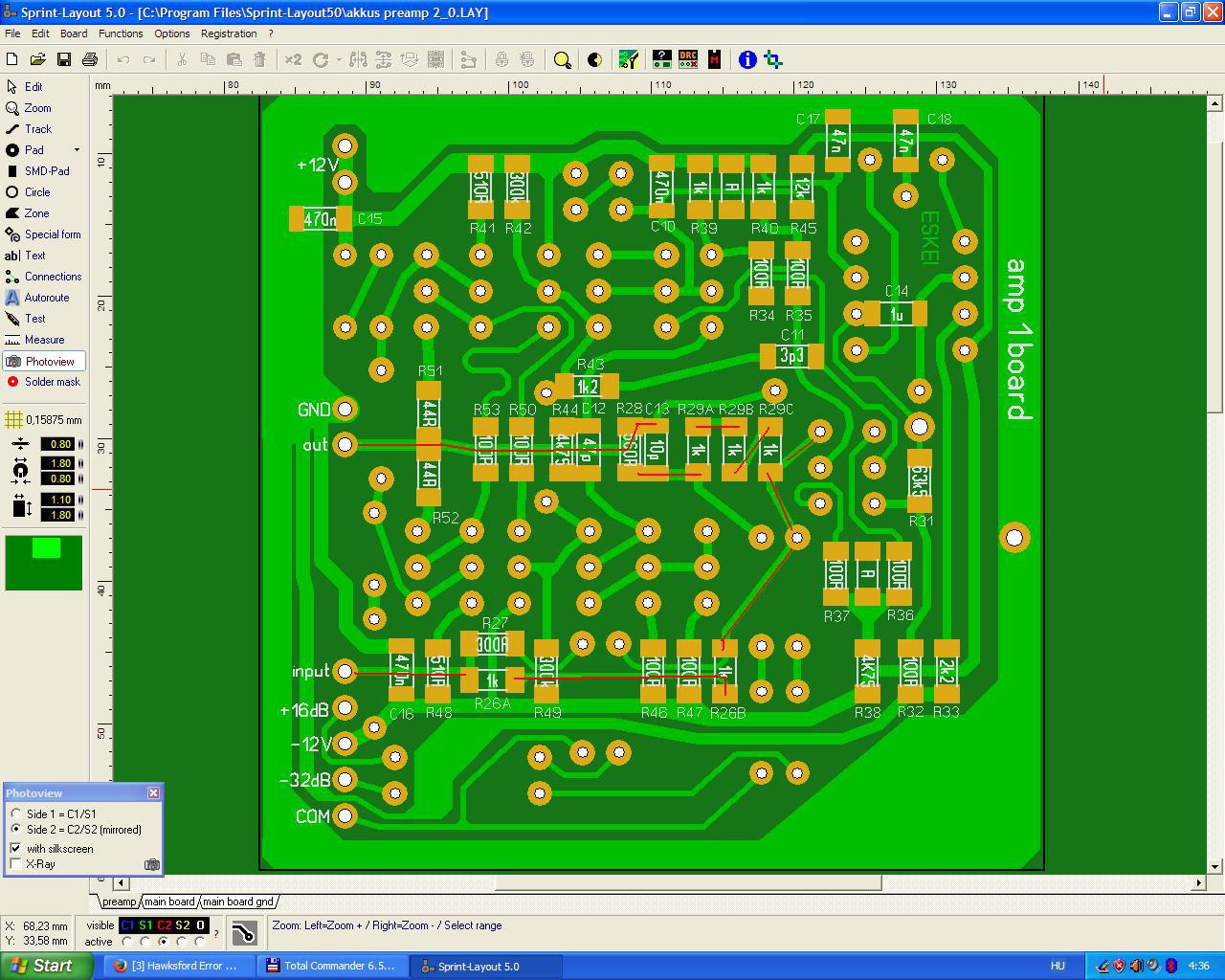 Ez a fetes izém gyárilag bakelit nyákon van, minden ellenállása szénréteg (kivéve a 0R1-ek). Valaki megépítette üvegszálas nyákra yageo fémréteg ellenállásokkal. Állítólag nem lett jobb, sőt ellenkezőleg.