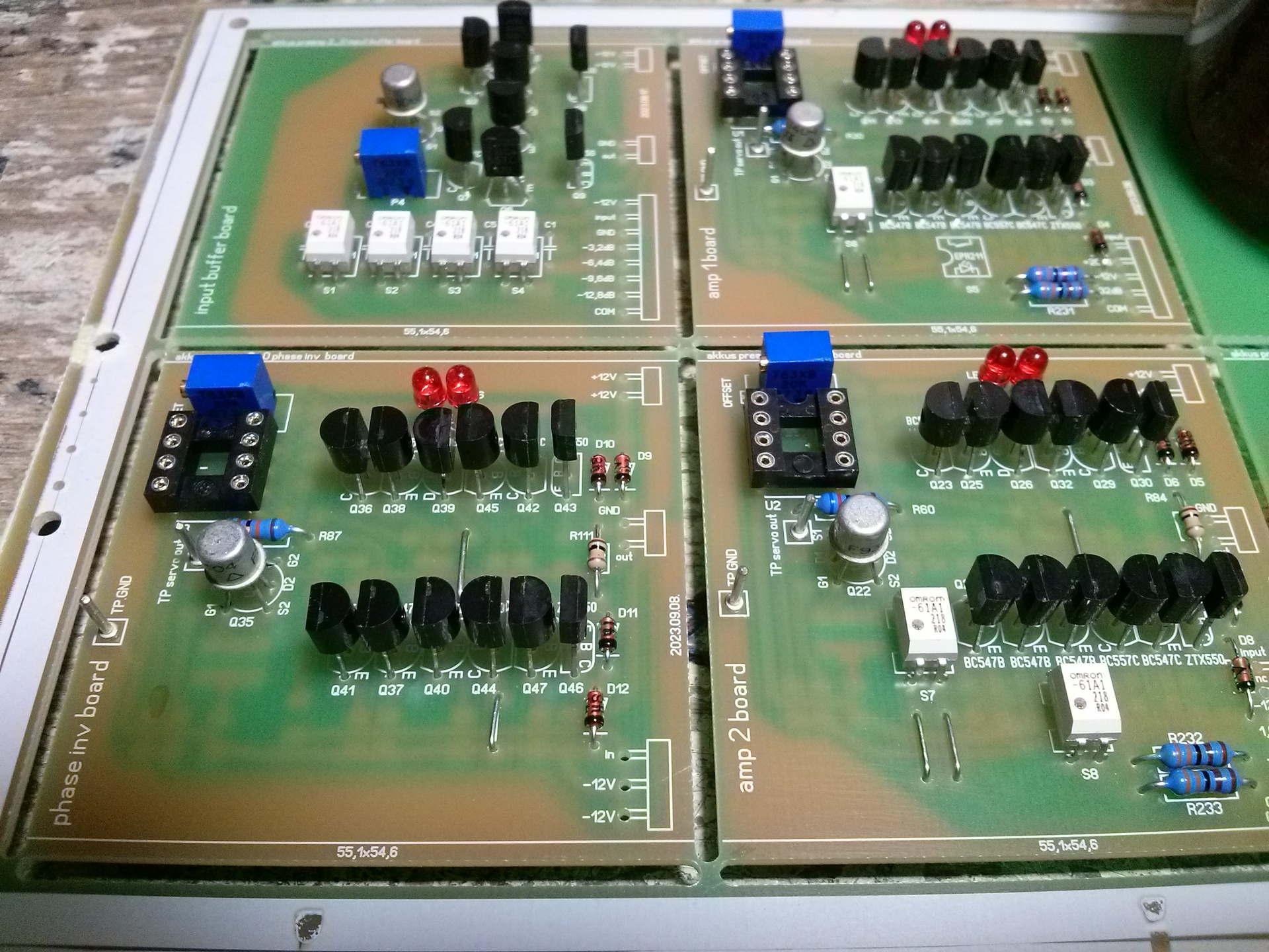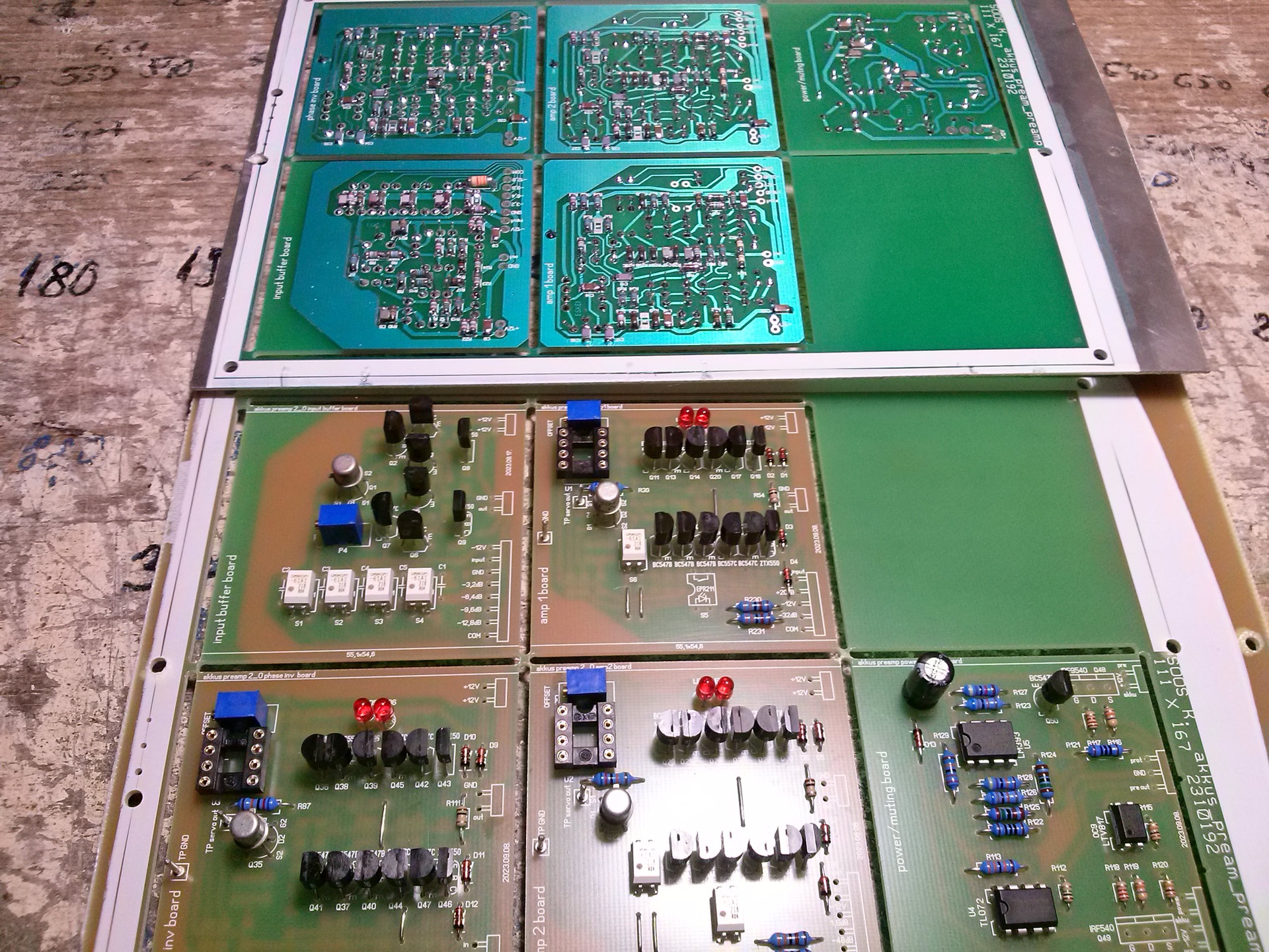 Megígértem (magamnak), hogy egyszer majd "leesemdézem" az előerősítőt. Ez az egyszer éppen ma van. A visszacsatoló ellenállások az állítólag nagyon jó hangú Vishay Beyschlag-ok. Ha készen lesz, egyesével átdugdosom a modulokat, oszt majd leírom változott-e valami.