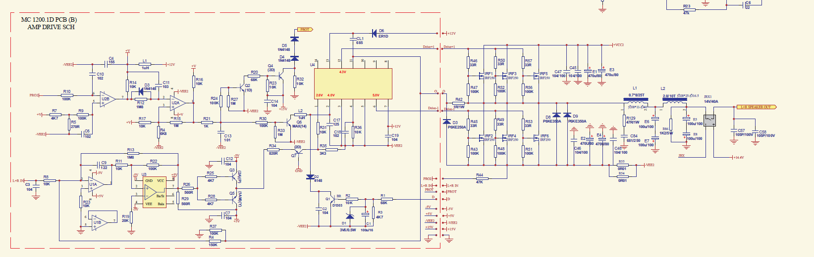 Üdvözletem! Adott egy MAC audio micro xl 1000 digitális autós erősítő. Hiba jelenség a következő hogy amikor gondol egyet akkor a kimenetre kiteszi a féltápot az az 56V dc. Csatolom fényképen a végfok kapcsolási rajzát. Minden alkatrész ki lett cserélve a meghajtó kártyán. Mi okozhatja a hiba jelenséget? Válaszokat előre is köszönöm!