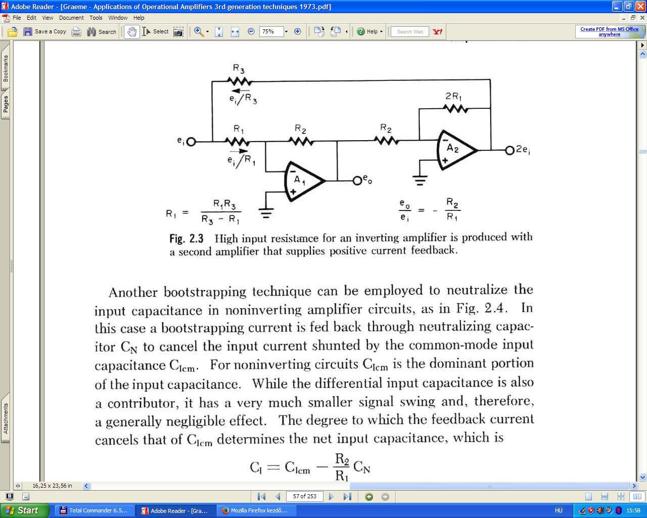 "Jerald G. Graeme: Application of Operational Amplifiers" Rögtön az elején találtam egy szellemes kapcsolást, invertáló erősítők bemeneti ellenállásának növelésére. Akit érdekel a dolog töltse le most a könyvet, mert egy idő után ezek el szoktak tűnni a netről. Van úgy. Letiltódnak, vagy mi. |