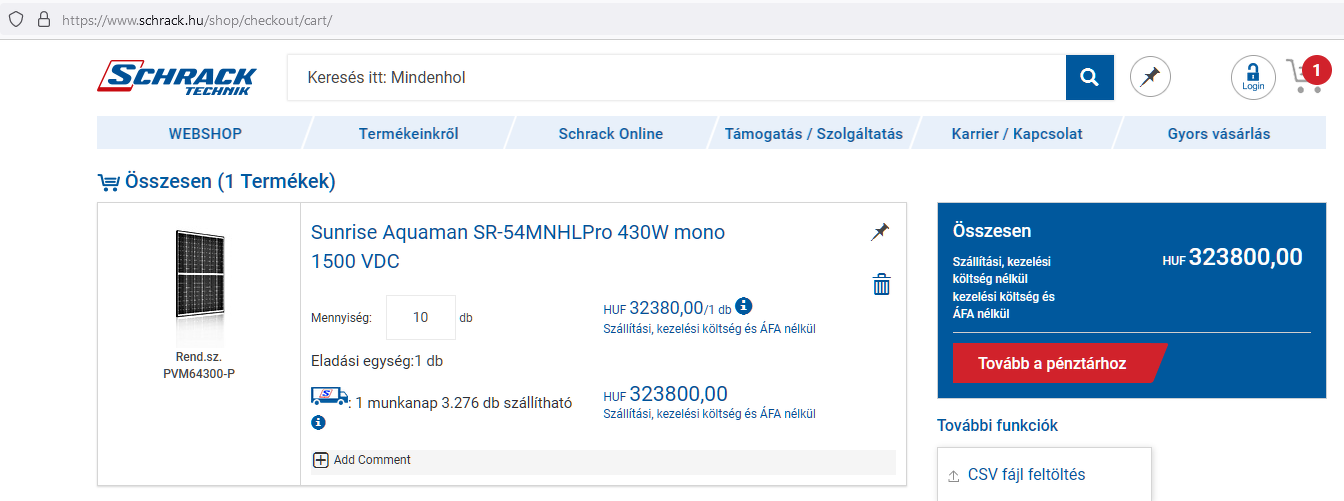 Nem kell aggódnod. A Schracknál most van éppen akcióban ilyen napelem és az áraik is nagyon kedvezőek - legalábbis a törzsvásárlóknak. Ráadásul nem kapugaranciás.