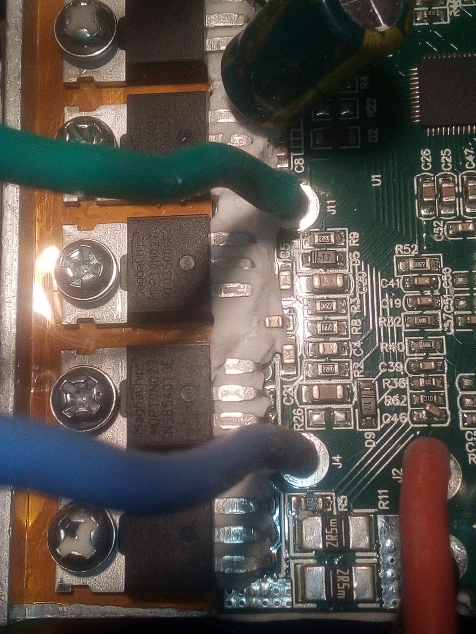 Ez is zsákutca lett,most lebontottam róla a szilikont,felteszem a fotókat,hátha valakinek ötlete támad tőlük. A sárga melletti piros vezeték megy az akku középhez az 5 kivezető kábelből.