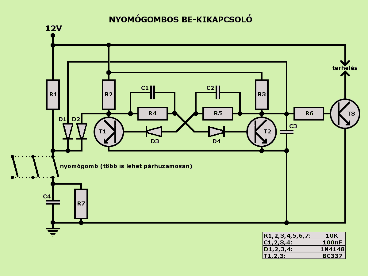 Perszehogy. Csak (ha már éppen nem bistabil relé az), akkor azt kell közétenni, amivel ez megoldható: egy bistabil áramkört. Egy impulzus egy kapcsolás.