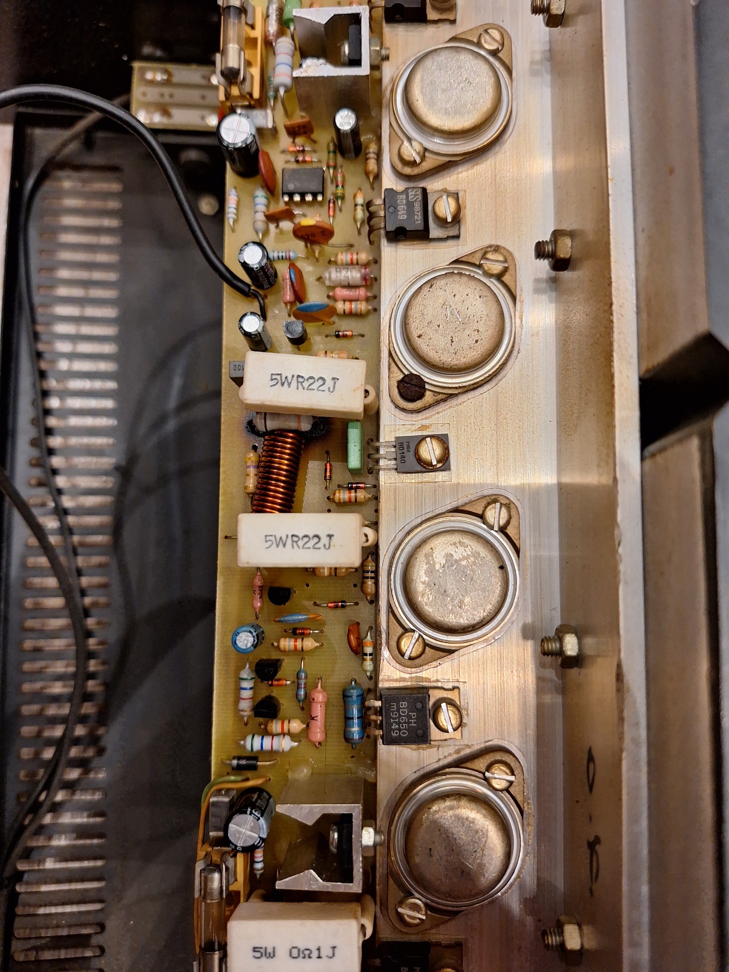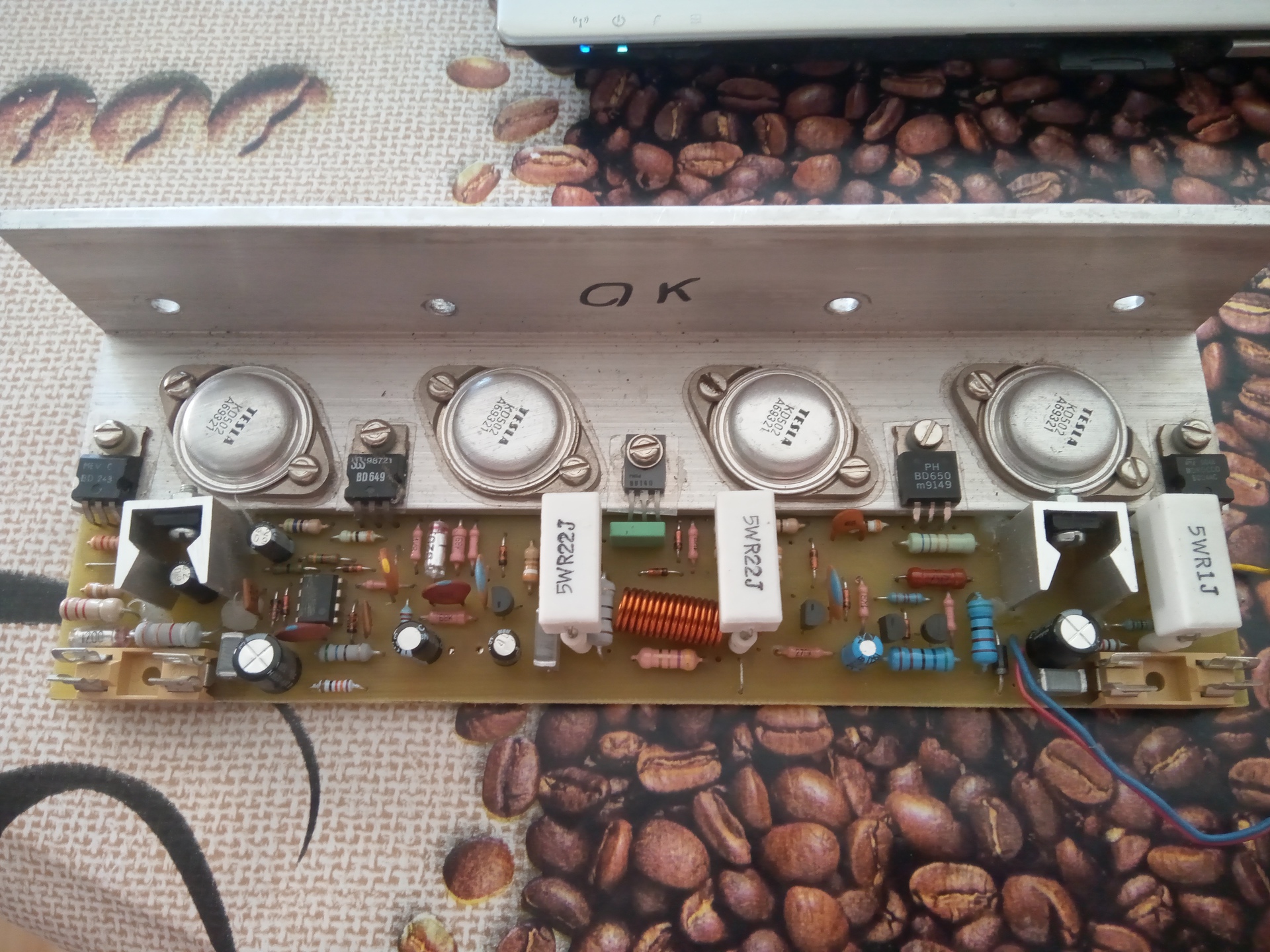 Végül beindult a masina. Ugyan nem tudom, hogy mitől javult meg(a végtranyók cseréjét követően), talán nem ártott bekötni a bemenetet is, bár szerintem ennek nem kellene problémát okoznia, hacsak nem kavartak valamit meg a gyártónál.... Egyelőre a G-s tranzisztorok is bírják, a hídját meg nem erőltetem.