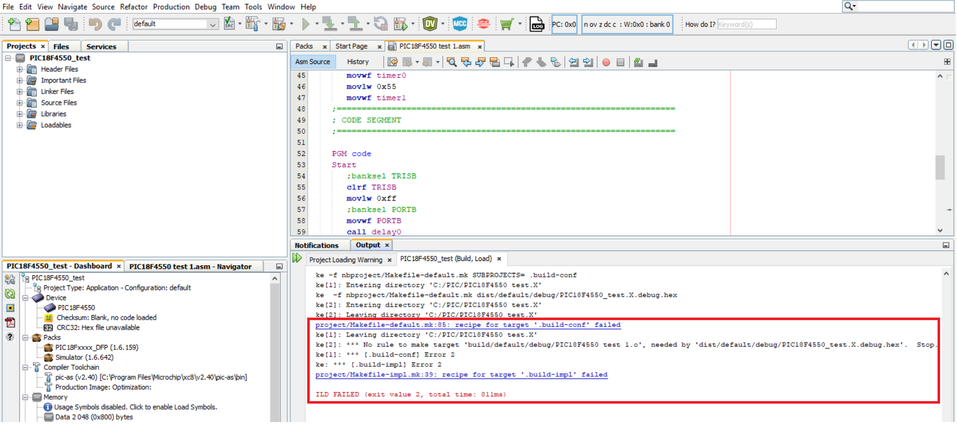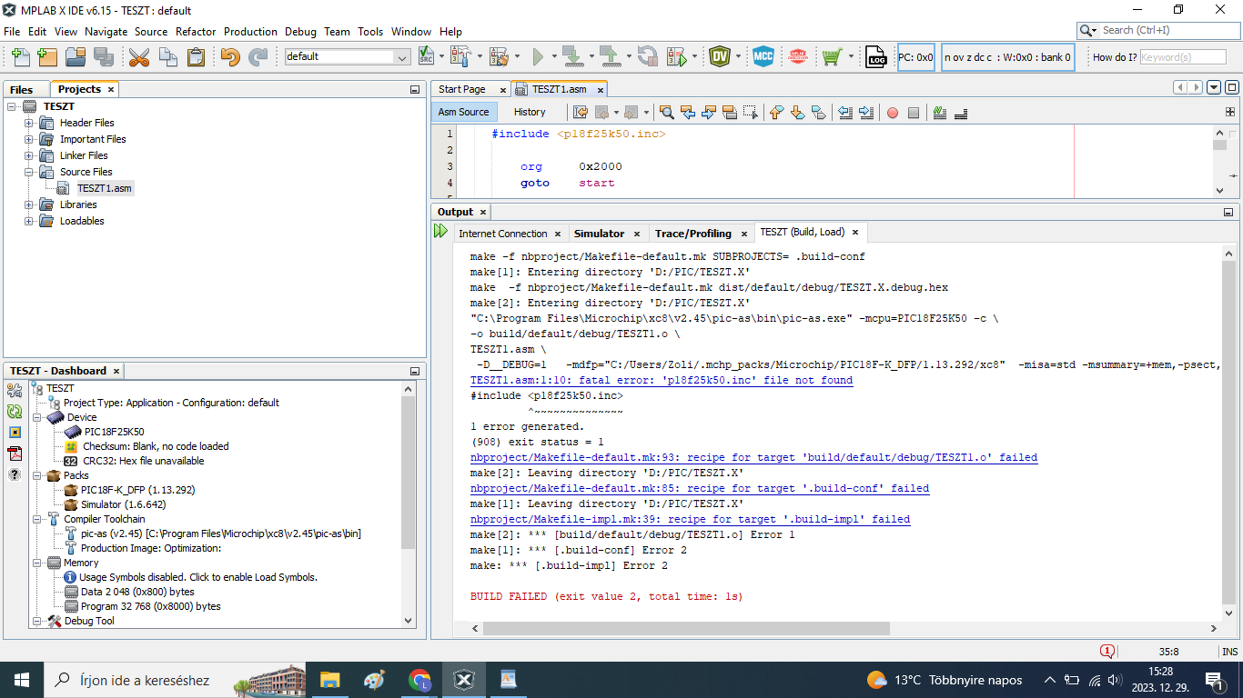 Még mindíg a MPLAB X IDE V6.15 assembly-vel küzdök. Nem sikerül a fordítás. Újra installáltam, ellenőríztem a beállítási útvonalakat, de nem sikerül a fordítás. Néztem Youtube videókat is, bár többnyire csak régebbi verziókról van.