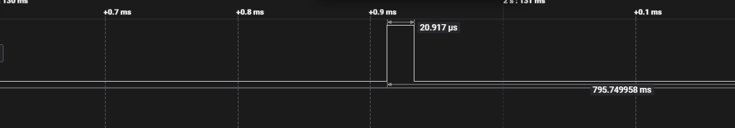 A problémám sok. De most elsőre az, hogy mint a kódból látható, egy 10us jelet szeretnék kiadni a B0 lábra ami a logikai analizátoron 20us, az ismétlődés pedig 800 ms a 400 helyett. Valami nem jó, csak azt nem tudom, hogy mi.