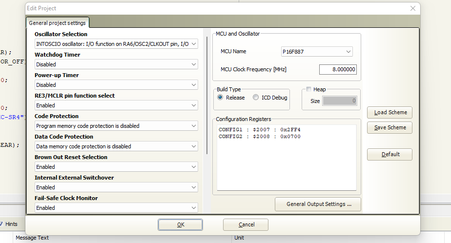 A program mikroc pro for pic ben íródik és abban a beállításokban szerepel.