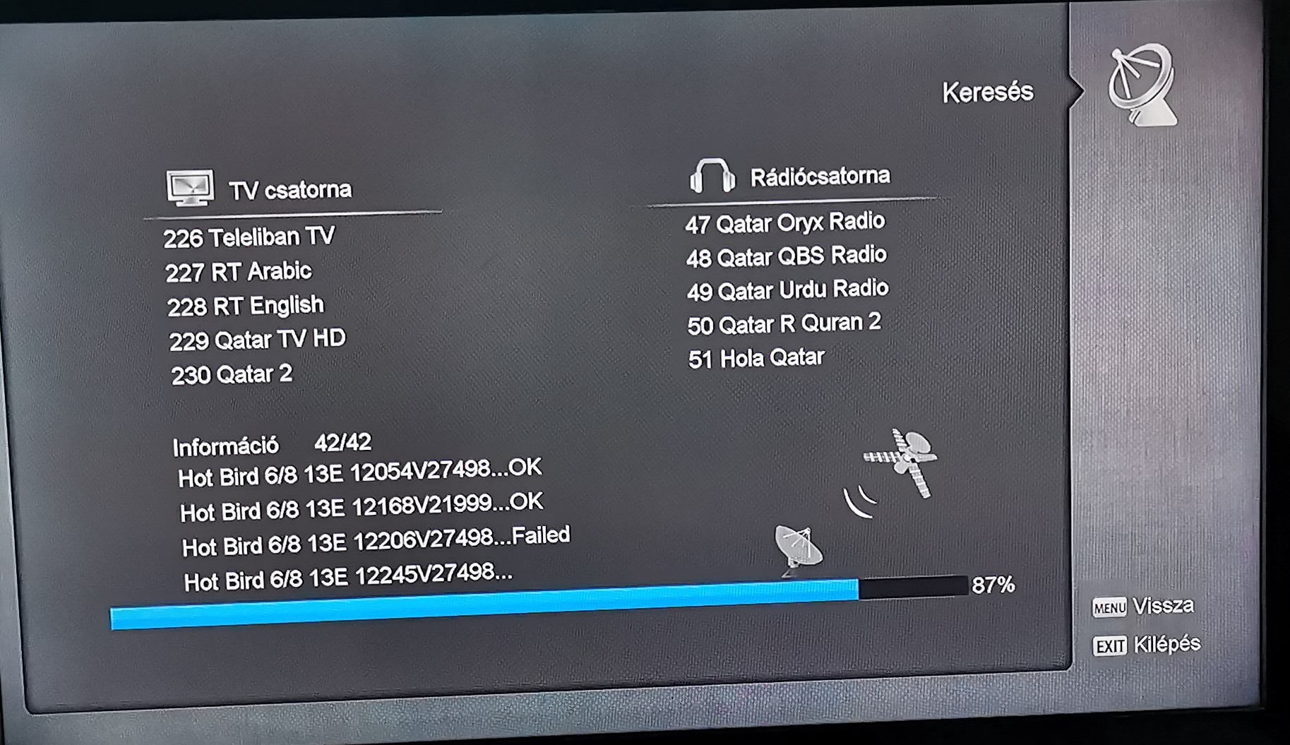 Biztos nem tökéletes mert a jelszintek nem a legjobbak a Hotbird-ról meg sok arab csatorna jön leginkább. Amiko micro HD SE vevővel ha rákerestetek a "B" fejjel a Hotbird műholdra akkor egy csomó failed frekvencia lesz. Németek vették nem értenek hozzá. Jelenleg egy tv van rajta.