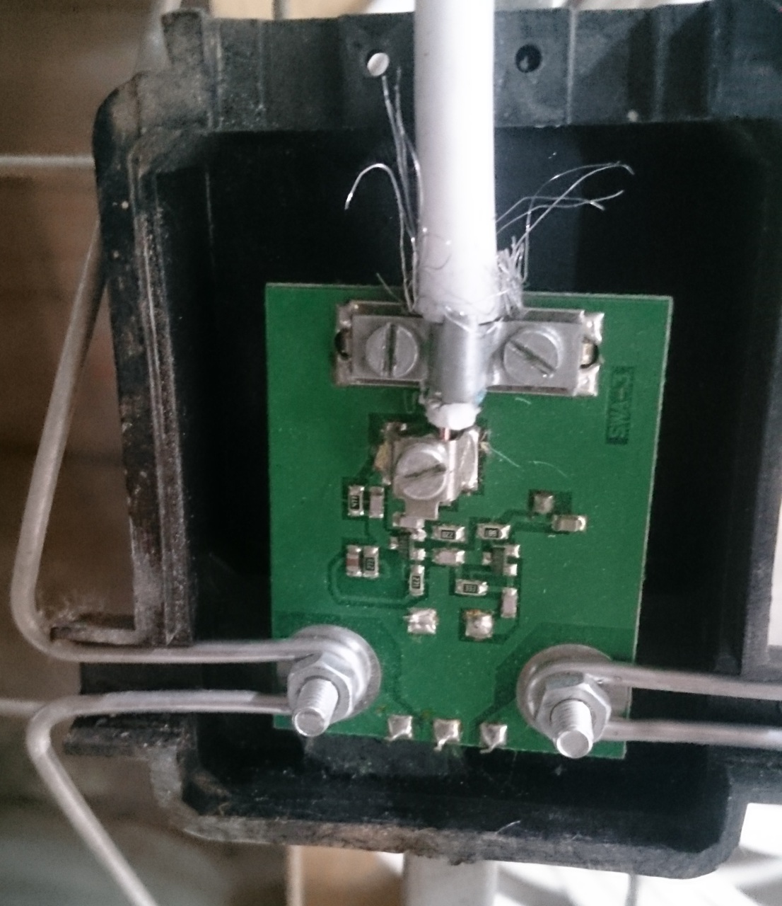 Ez egy UHF(21-69 csat) síkreflektoros 4 dipólos csoport antenna fejerősítővel. 15V DC-ről megy. Nehezen szerelhető, koaxdugóba szerkesztett tápfeladóba volt a tápvezeték bekötve, és a koax is. Parasztnak, tanyára való (műszakilag) mert a széles sávú fejerősítő a közeli adók miatt leül. városi körülmények közt ki szoktam hajítani a fejből, normál balunra cserélem. Aztán jól működik. A tápfeladás egy 1 n kerámia a TV felé, kisebb induktivitás a táp felé, közös pontjuk az antenna felé. Az antenna a 90-es évek divatja. A hozzászólás módosítva: Nov 12, 2017