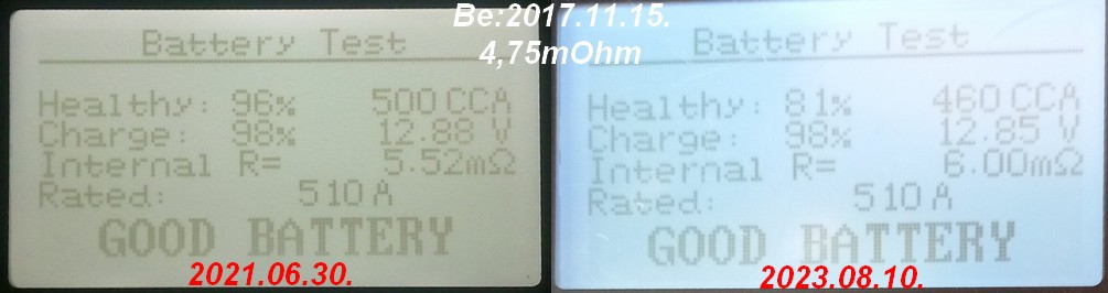 Történt, hogy autószerelő haverhoz elvittem az autóm akkucserére (sokszor segít, legyen haszna neki is, miközben én is meg tudnám ugrani a feladatot stb.), mivel tart raktáron több típust is. Kb. fél év után már érezhetően nehezen indult az autó. Felhívtam, hogy most éppen ilyen bajom van. Nyílván emlékezett arra, amire kellett mert mire odaértem, ki volt készítve az új, de más márkájú akku. Csak annyit mondott, nem én vagyok az első, többet ilyen sz***t nem vesz a kereskedőtől. A másik akku azóta is vígan muzsikál. Idézet: Igen, azok alapján amiket írsz nem is számítottam másra. „kenytelen vagyok közölni: rossz az akkud” Sőt, a szomszédom 8 hónapos akkuja is rossz, mert az is pezseg már 14,06V-nál. Ki kell ábrándítsalak, az akkum a rossztól még elég messze van. Beépítve 2017-ben lett, akkor volt 100%-os a műszer szerint is, és 4,75mΩ belső ellenállása de ezt nem fényképeztem le, így a cetliről írtam rá fehérrel a képre. A második és a harmadik mérés értékei is ott vannak dátummal együtt. Ha egy 6 éves akku még 81%-os állapotban van a műszer szerint akkor az sok minden lehet de rossz az nem (hisz írja a műszer is hogy good battery). Majd ha olyat ír a műszer ott az első sorban hogy: Healthy: 55% na majd akkor lesz cserés meg rossz az akkum, addig nem. Lehet ezzel vitatkozni, tedd is meg hogy mindenképp a tiéd legyen az utolsó szó, ígérem én itt elengedem a dolgot, töltsd az akkudat amennyivel akarod. Tizenévig mentem melózni akkuműhely mellett reggelente, néha el is töltöttem ott 1-2 órát, de ott sem töltöttek soha akkut még 14V-ig sem, lehet ők sem értettek hozzá.