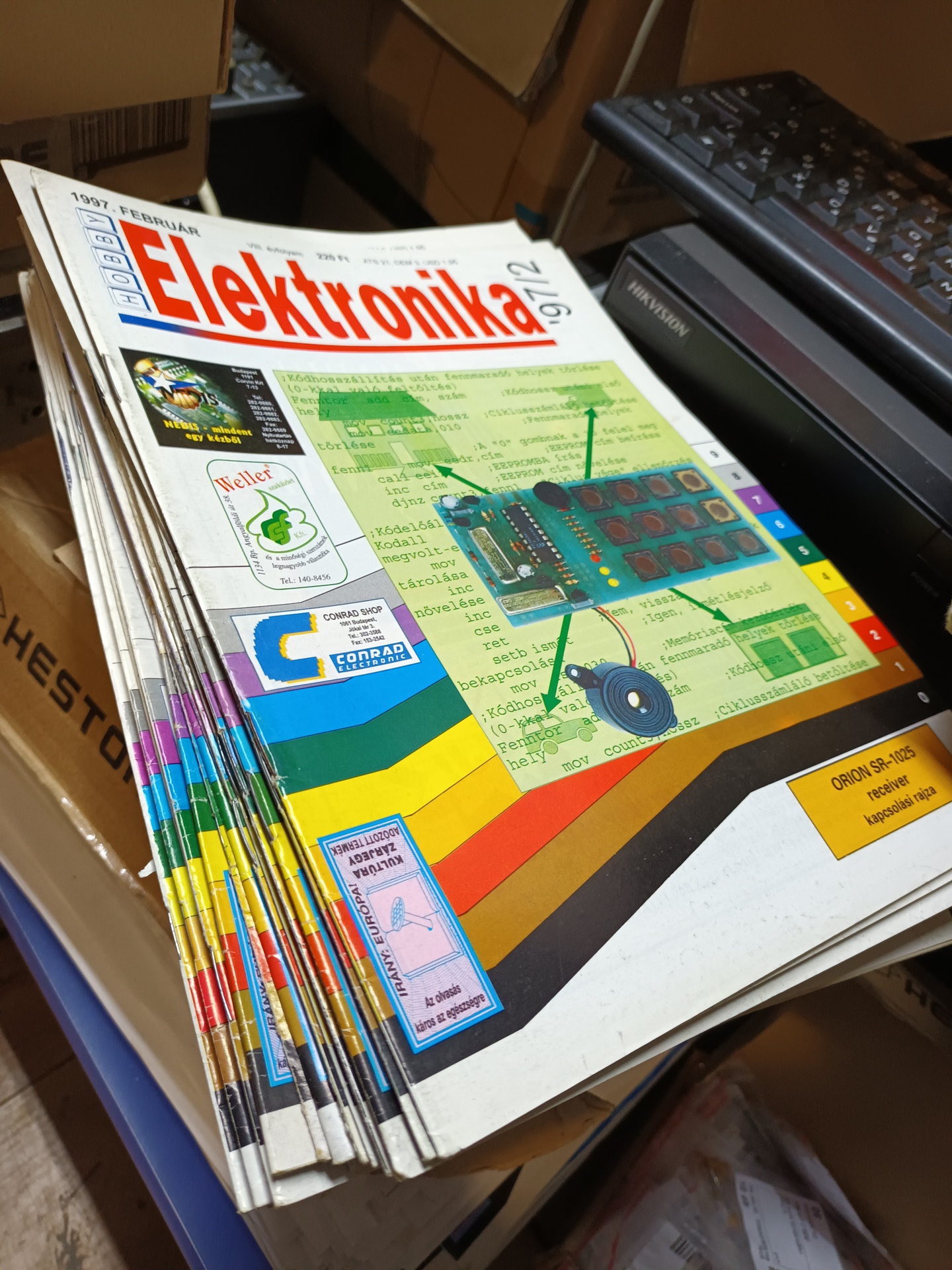 Mindegyik Hobby Elektronika, csak a jobb oldali képen már az új logós újságok vannak