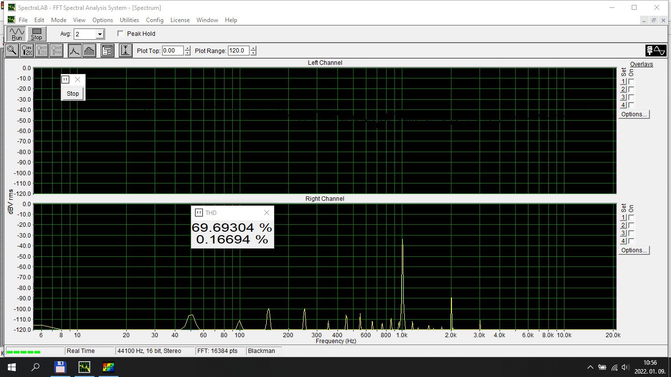 Ha nagyobb felbontást szeretnék előveszem az analóg szkópot. De 80%-ban inkább a digitálist használom, mert sok minden olyat tud amit az analóg nem. Ezzel az FFT analízissel egyszer játszottam életemben és másodjára most. Nem tudom mire jó. Torzítást mérni biztosan nem. Példaként mutatom, hogy mit látok a szkópon és mit a hangkártyán ugyanannak a generátornak a kimeneti jelét mérve. Ezért írtam a múltkor, hogy a szkópnak csak játék FFT analízise van.