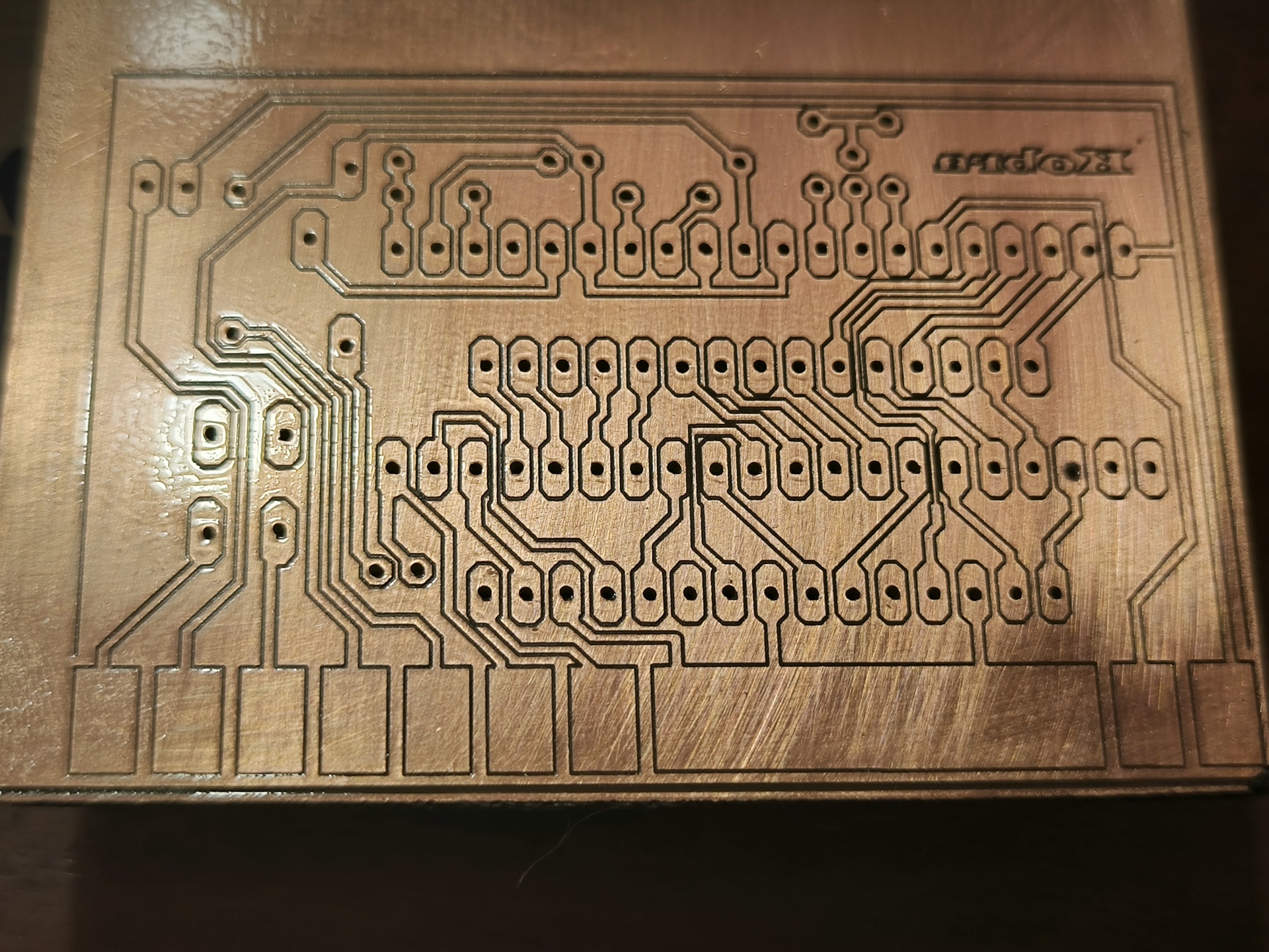 Szia Ezzel már sokat mojoltam de tökéletes nem lett már mint a nyák. Most egy hibrid nyák készítéssel értem el olyan minőséget ami közel van a nagyon jó hoz. Matt fekete festékkel lefújom a nyáklemezt a mintát lézerrel hozom létre. Ha megvan a minta lecserélem a lézer fejet motorra 0,6 fúró és mindjárt ki is fúrom. Persze az X-Y pozíciót nem mozdítom el a csere közben. És a régi jó peroxidos maratással készre maratom. Mutatom az eredményt.