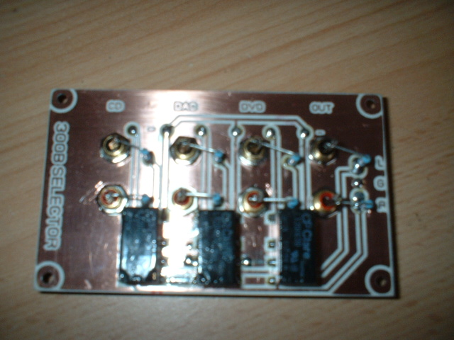 Bemenetválasztó RCA aljzatokon közvetlenül elhelyezett relék(amiket DC-vel kapcsolgat 1 forgókapcsoló , vagy más ) és onnan 2- 2 UTP kábel enyhén sodorva a potihoz , ez lehet akár 20-30cm is ,brumm nincs .