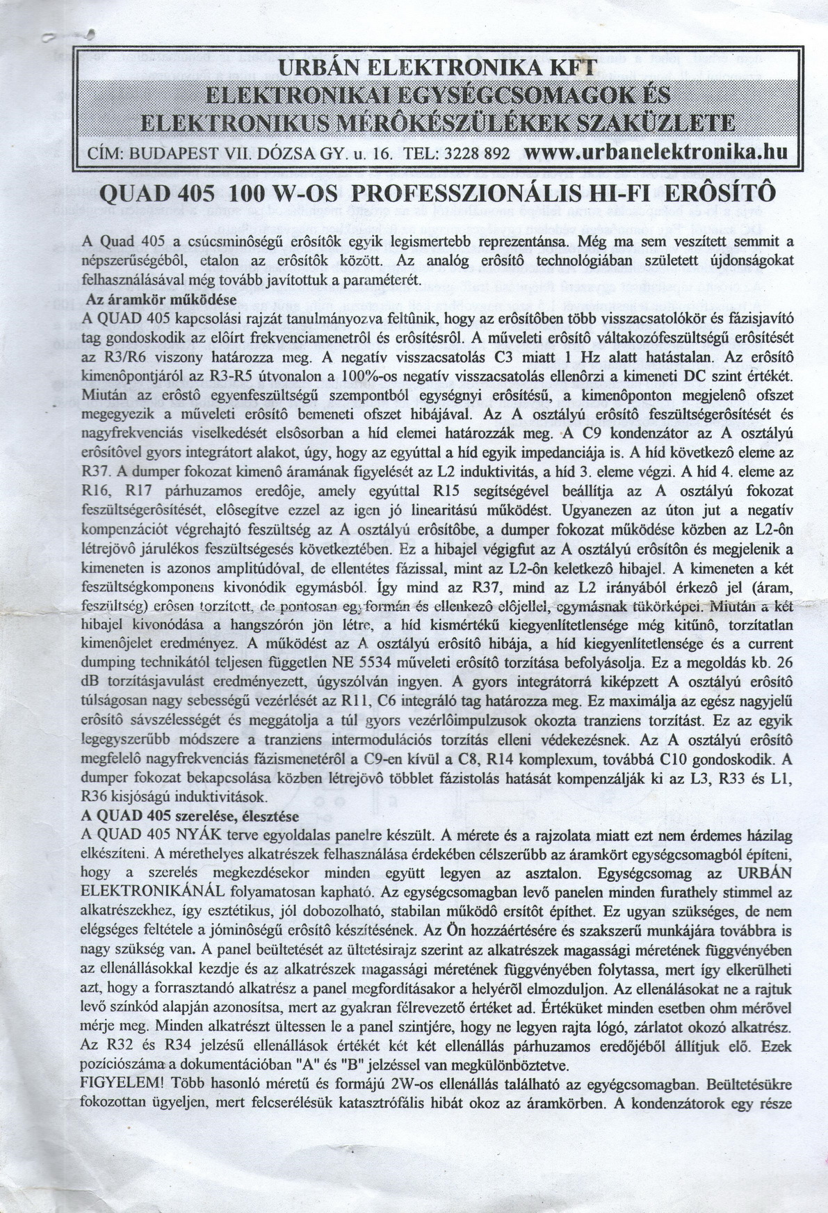 2007-es iskolai éveimből előkerült az akkor épített Quad 405. Szétszedtem a dobozt, amibe akkor tettem, és egy méltóbb környezetben szeretném most elhelyezni. A panel az Urbán féle verzió, de nem teljesen az a változat, amiről találok infót a neten, ha rá akarok keresni az akkori Urbán kit-re. Például ebben a T2 pozícióban BC300 helyett MJE340 van. 2007 februárjában csak nyákot vettem az Urbánnál, ez abból az időből való. Gondolom kicsit változtatott a nyákterven, de sajnos ilyen dokumentumot nem lelek fel sehol, ami ezt ábrázolná. Na de hogy a lényegre térjek! Számomra ennek az erősítőnek inkább emlék értéke van. Nem arra szánnám, hogy ezen hallgassak zenét napi szinten. A mechanikai felújítás közben, maga a modul is megmozgatta a fantáziámat. Gondoltam felnézek ide, és megtalálva ezt a topicot, visszaolvasgattam, és látom, hogy készültek azóta más tervek. Valamilyen szinten bizonytalan lettem, nem tudom eldönteni, hogy a végfokmodult is tunigoljam, vagy maradjon az Urbán féle. Valaki tud arról véleményt írni, hogy egy MJ15003-al szerelt tervezés mennyivel adhat többet, mint a BD249C-s Urbán verzió?