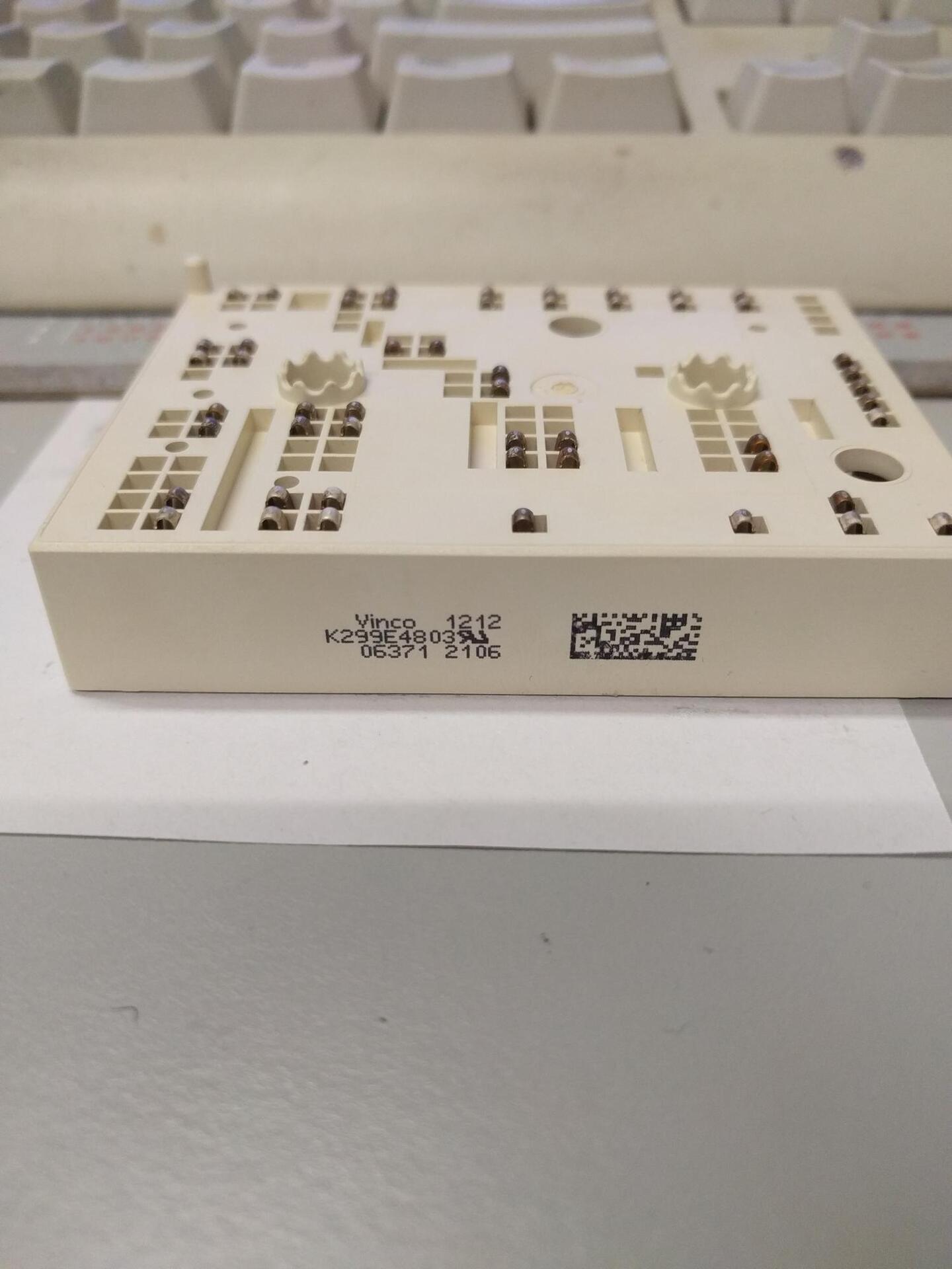 Ez egy MINISkip 3 tokozás. A Vinco elég sok modulja használja, ezek között keresgélj: https://www.vincotech.com/products/by-housing/housing/miniskiip-3.html Valószínűleg megegyezik valamelyikkel, csak más típusszámot nyomtattak rá.