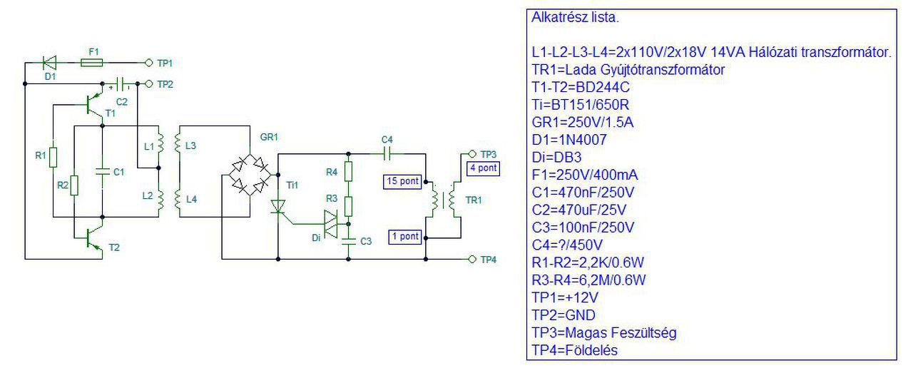 Köszi. Arra gondoltam,hogy van egy vp. rajzom,ezt már párszor összeraktam és jól is működik,hogy ezt felhasználva lehetne-e belőle kábítót építeni? Persze az egyenirányító hidat és az utána lévő sallangokat elhagyva. Az inverter trafó helyett egy másikat tervezni, ami a megfelelő feszültséget adja le. Persze mint írtam,nem értek hozzá, csak egy kérdés volt.