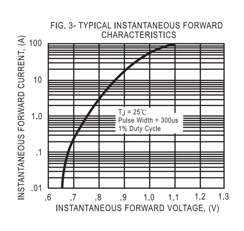 A képet a KBPC3510 graetz adatlapjából vágtam ki, nekem ezekkel van közösítve a két stringem mert sem a közösítő MC csatlakozókban sem az azokban lévő műanyag diódákban nem bíztam, plusz nem sok jót olvastam ezekről (tüzet okoznak). Ott a grafikon, hogy mennyi a dióda nyitófeszültsége adott áramokon, 10mA-en kb. 0,66V, 10A-en meg már kb. 0,87V.
