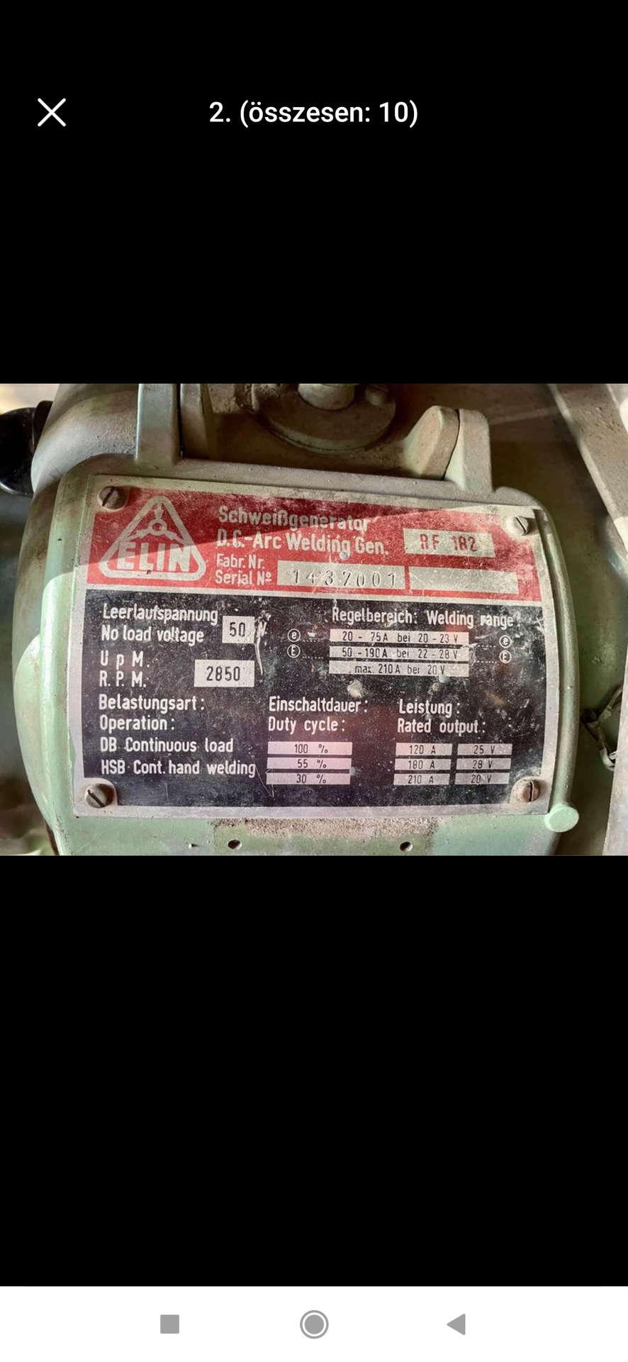 Méricskéltem egy kicsit, ami átjön a villanymotorból nincsen villamos kapcsolatban a tekercsekkel a fő fázistelercsekkel, a dinamót kézzel forgatva jobbra pozítiv a feszültség, balra forgatva negatív. Megforgatni áramról nem opció 3 fázis hiányában. Az internetet bújva rátaláltam ilyen típusú gépre(es182) amin jobbra van jelölve a forgàsirány, (rf182 nél balra). A 4 db áram skálát nem igazán értem még továbbra se én se mert nincsen több kapcsoló.